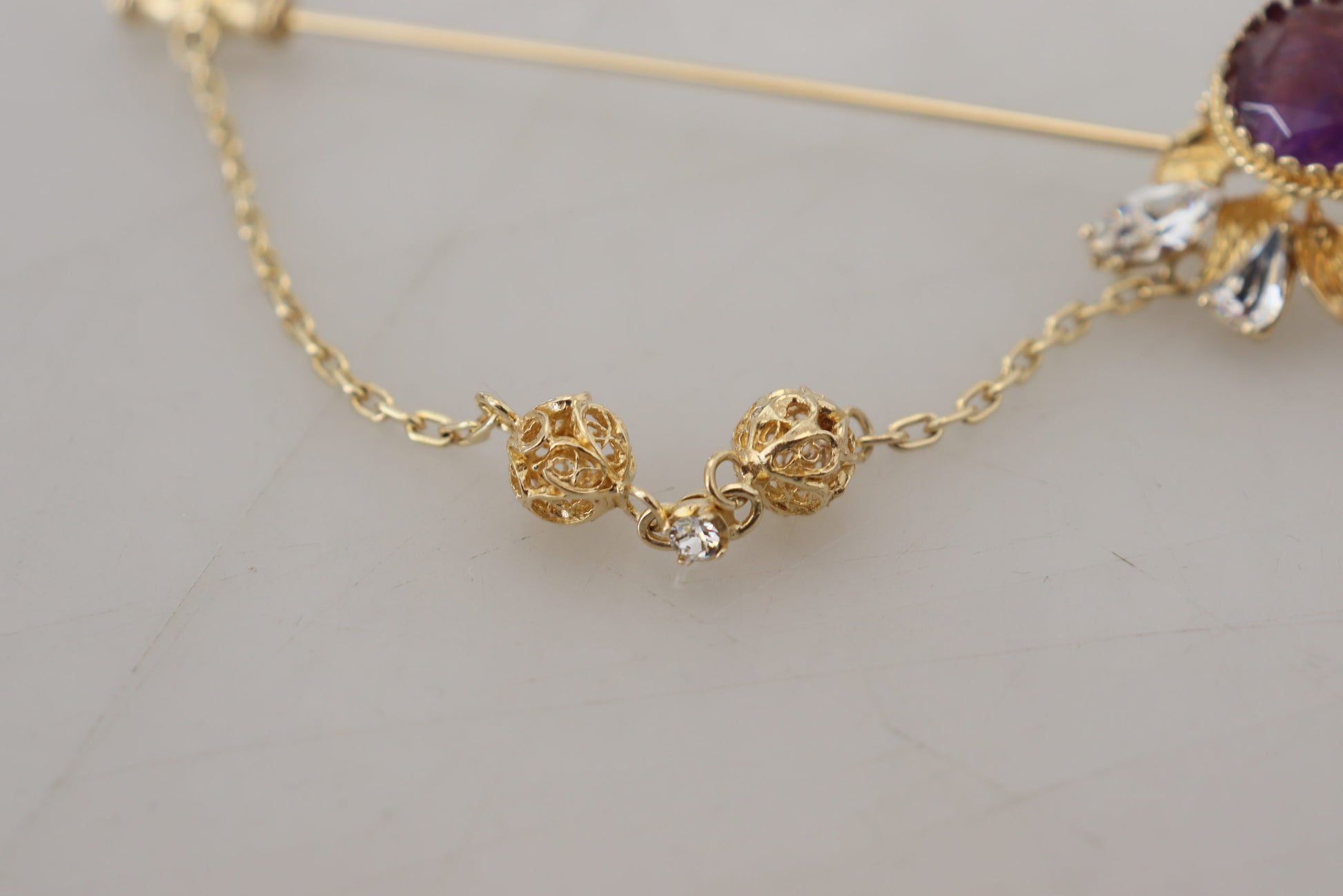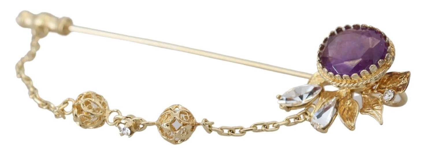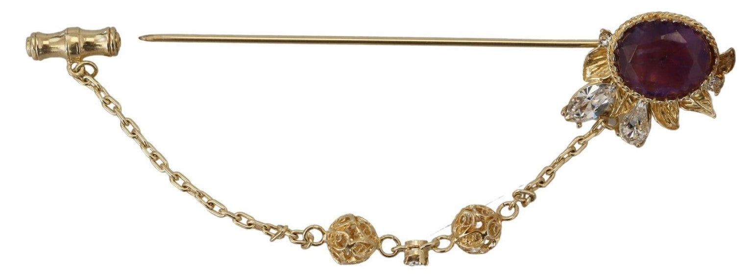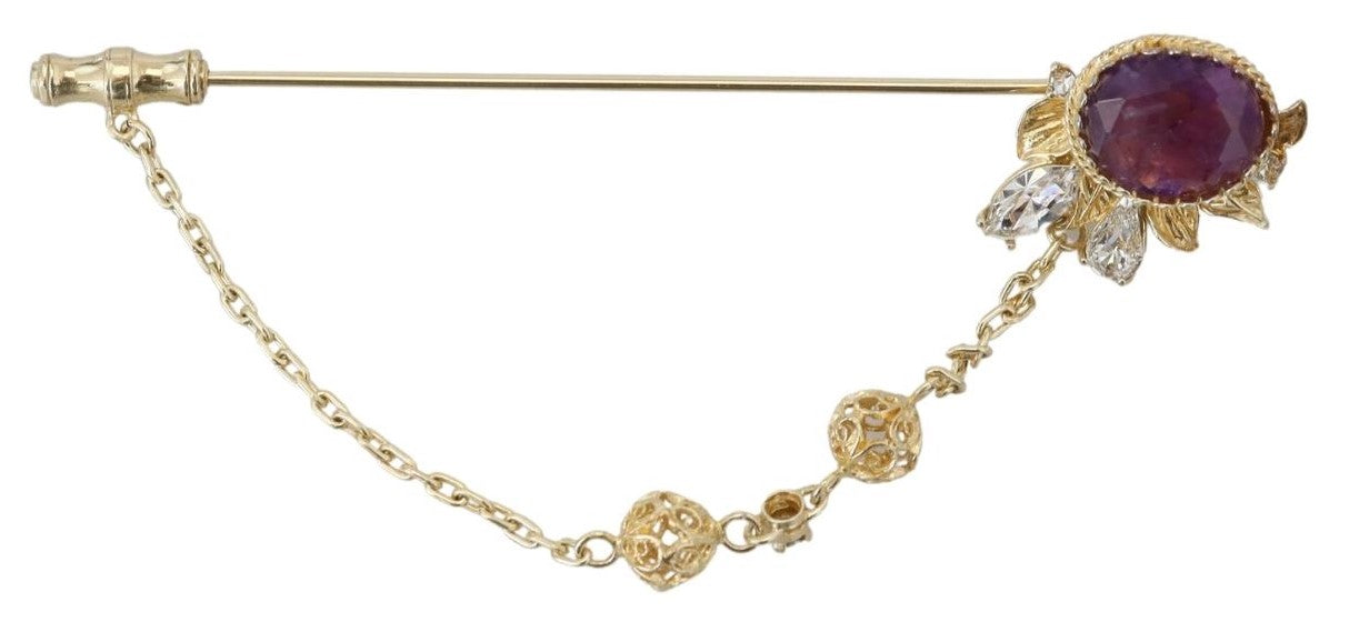 Dolce & Gabbana Gold Tone 925 Sterling Silver Crystal Chain Pin Brooch