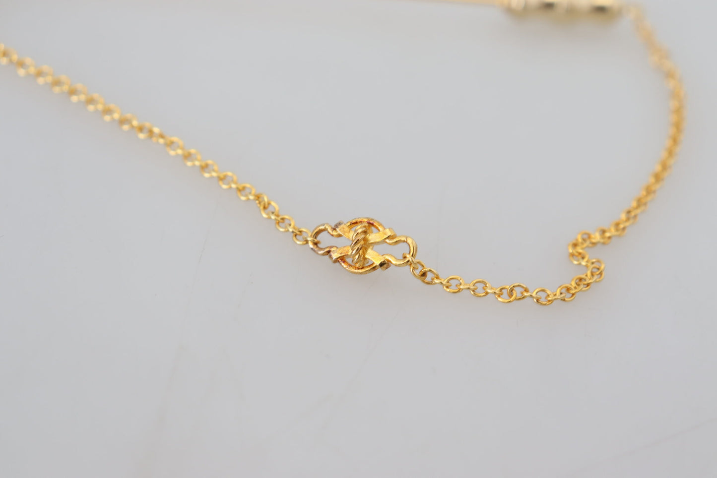 Dolce & Gabbana Gold Tone 925 Sterling Silver Crystal Chain Pin Brooch