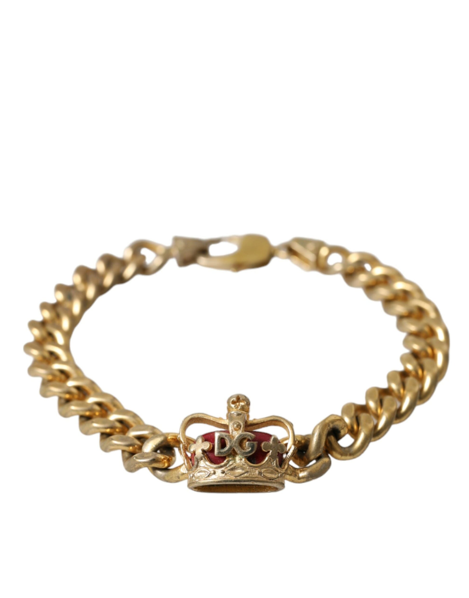 Dolce & Gabbana Gold Tone Brass Crown Charm Curb Chain Bracelet