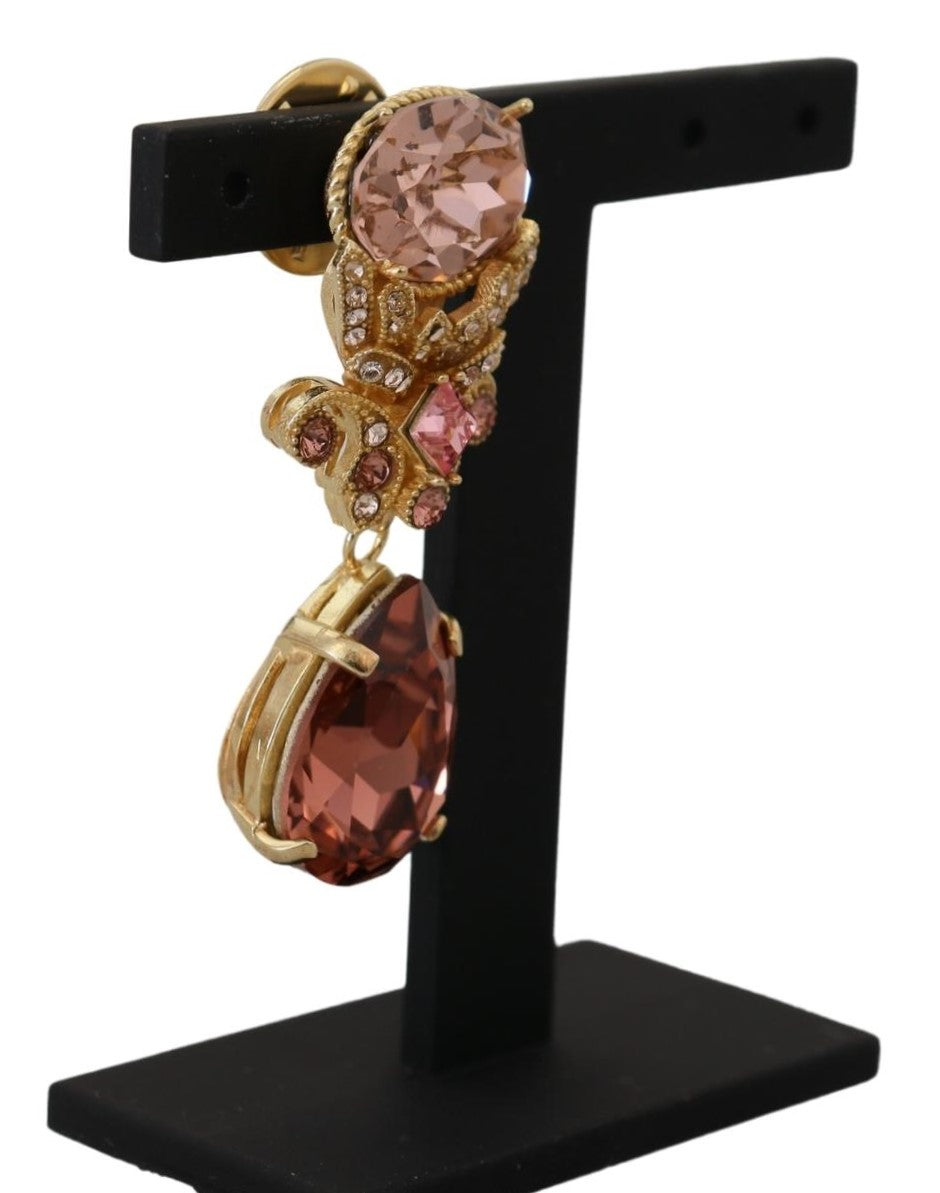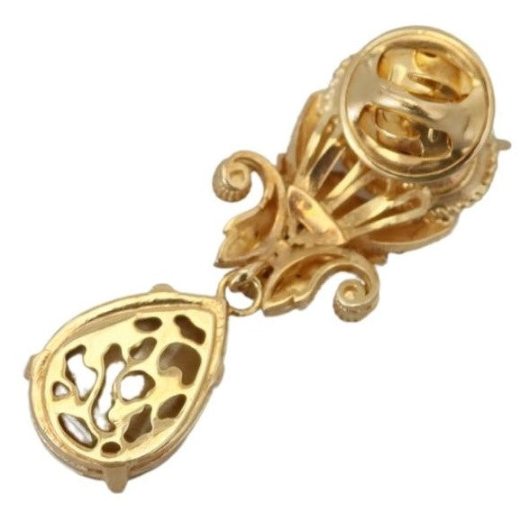 Dolce & Gabbana Gold Tone Brass Crystal Jewelry Dangling Pin Brooch