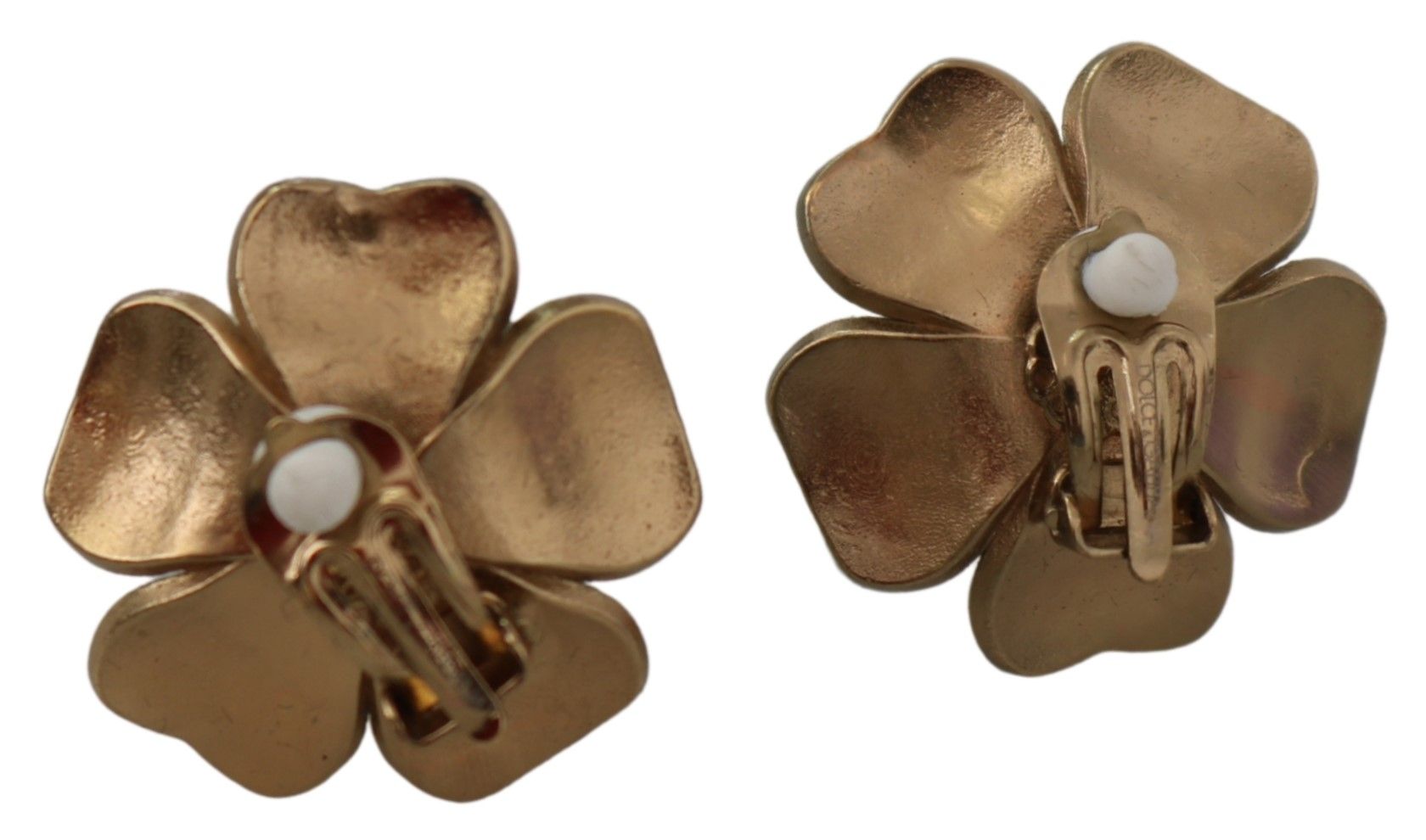 Dolce & Gabbana Gold Tone Maxi Faux Pearl Floral Clip-on Jewelry Earrings