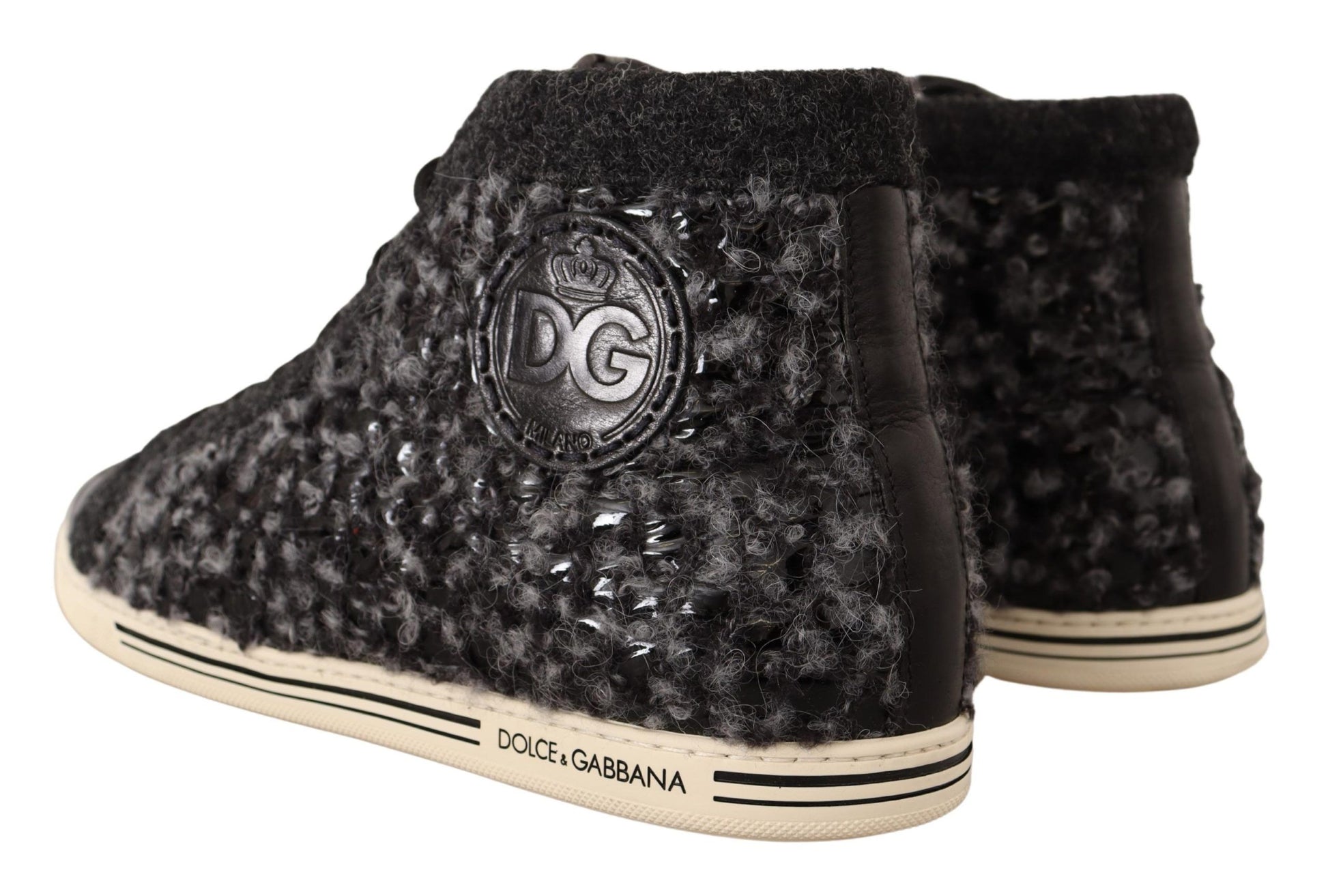Dolce & Gabbana Gray Black Wool Cotton High Top Sneakers