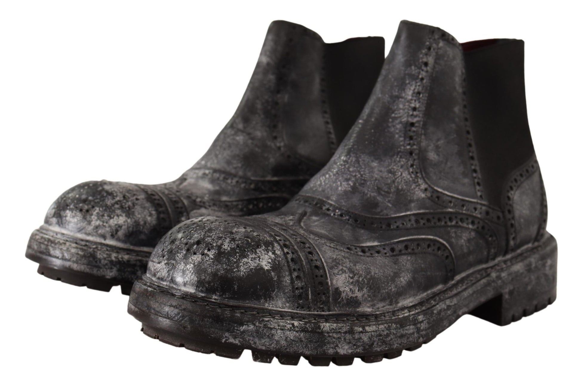 Dolce & Gabbana Gray Leather Ankle Casual Mens Boots