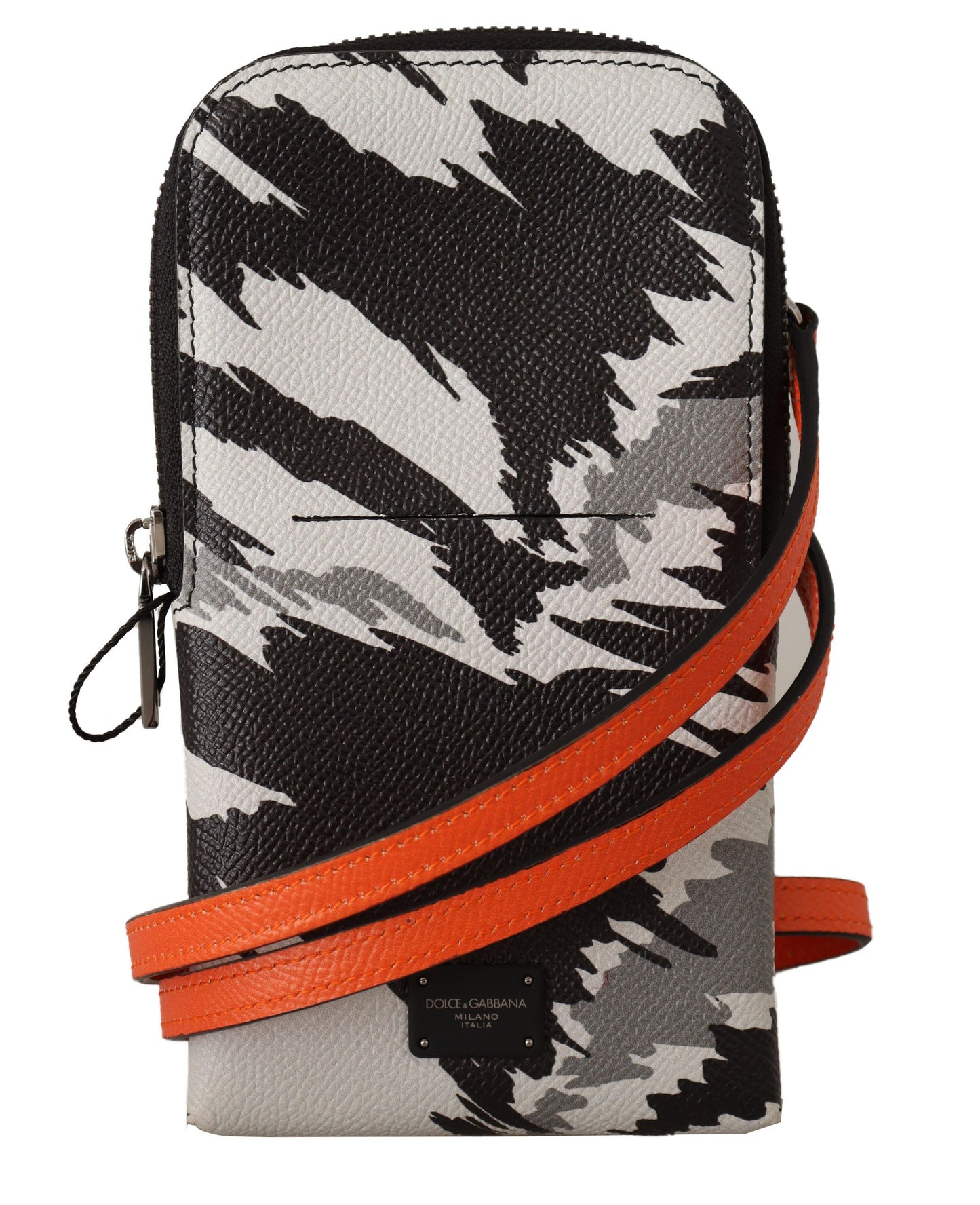 Dolce & Gabbana Gray Leather Cross Body Neck Strap Card Pocket Wallet