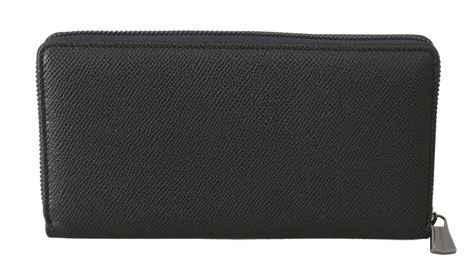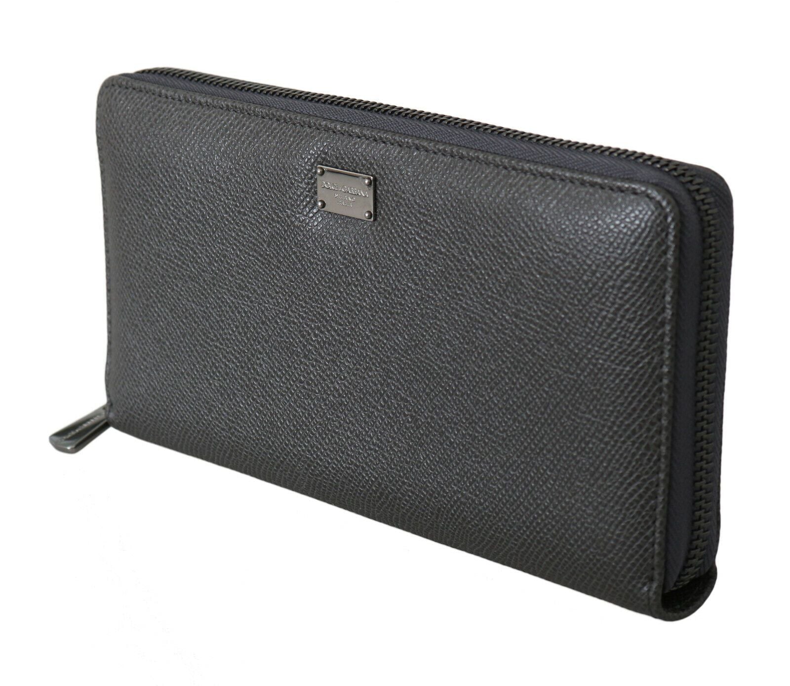 Dolce & Gabbana Gray Leather Zipper Continental Bill Card Coin Wallet