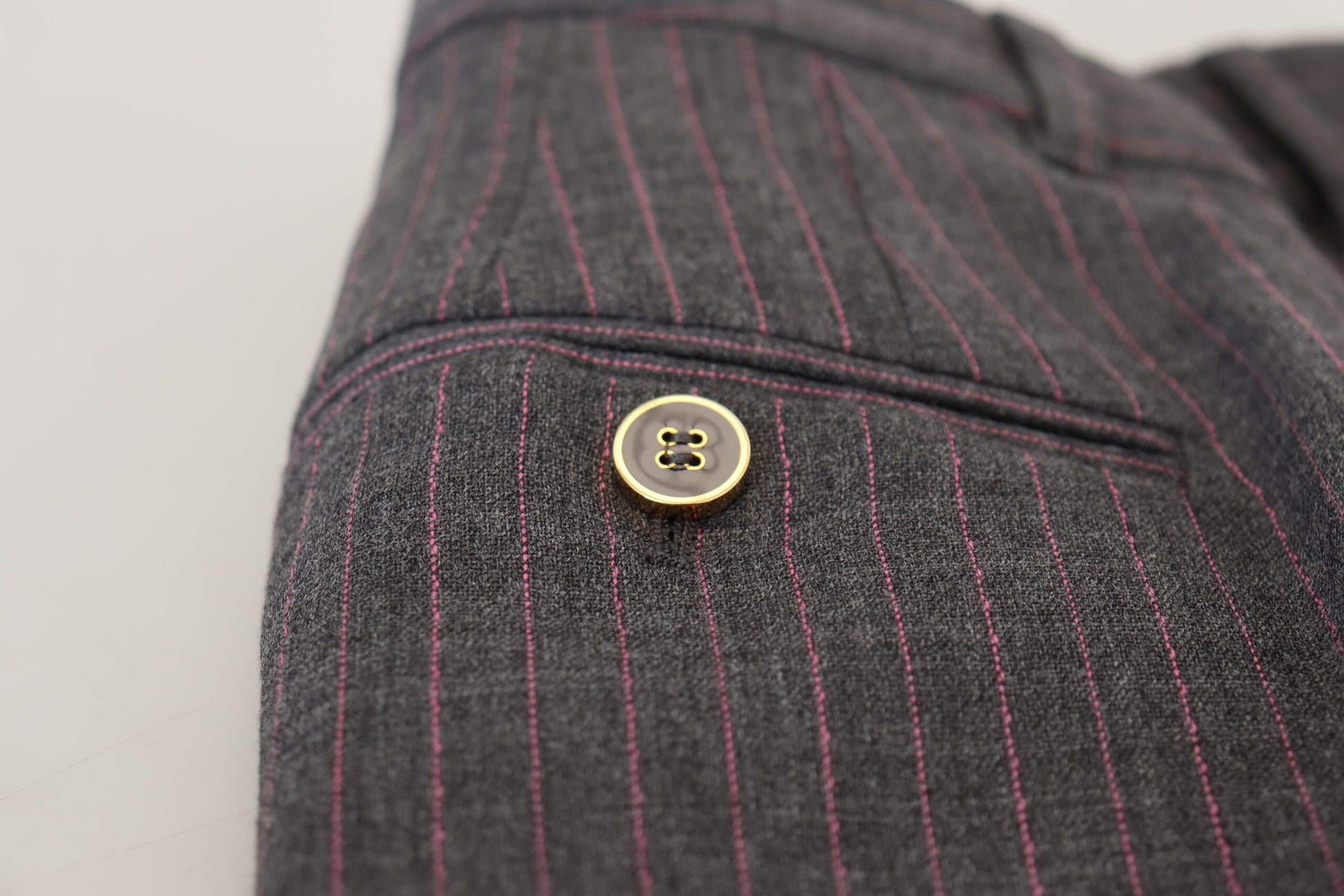 Dolce & Gabbana Gray Stripes Wool Tapered Women Pants