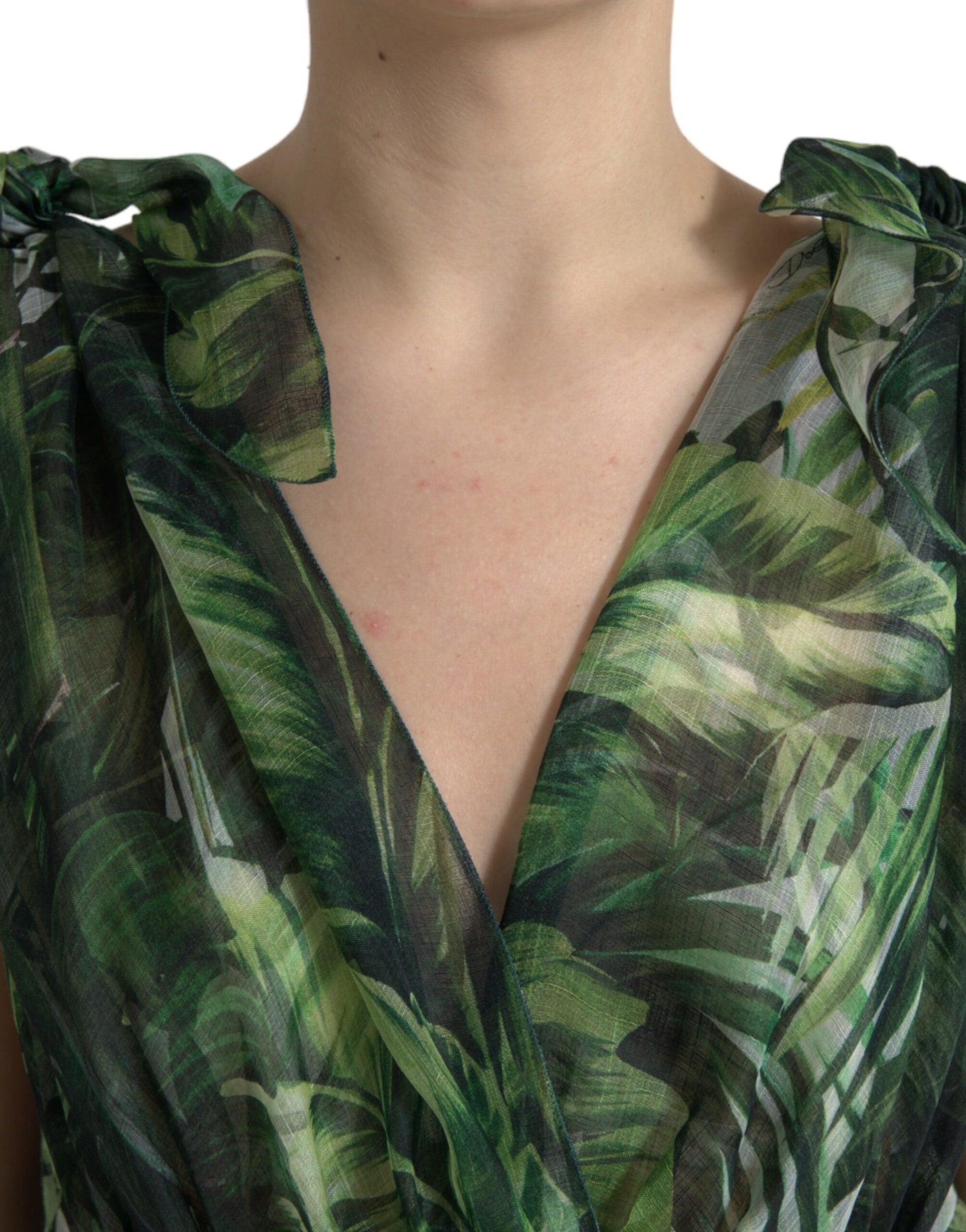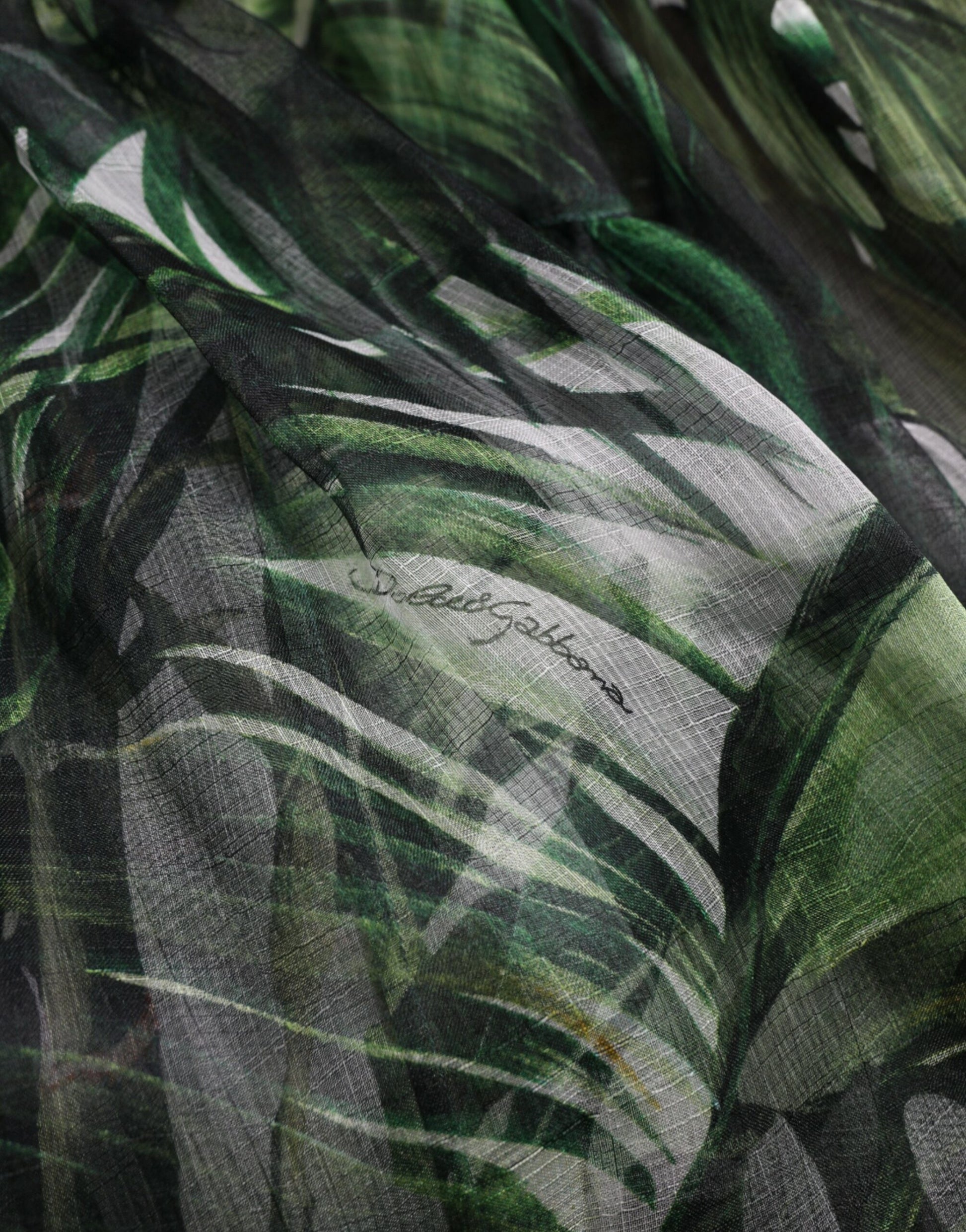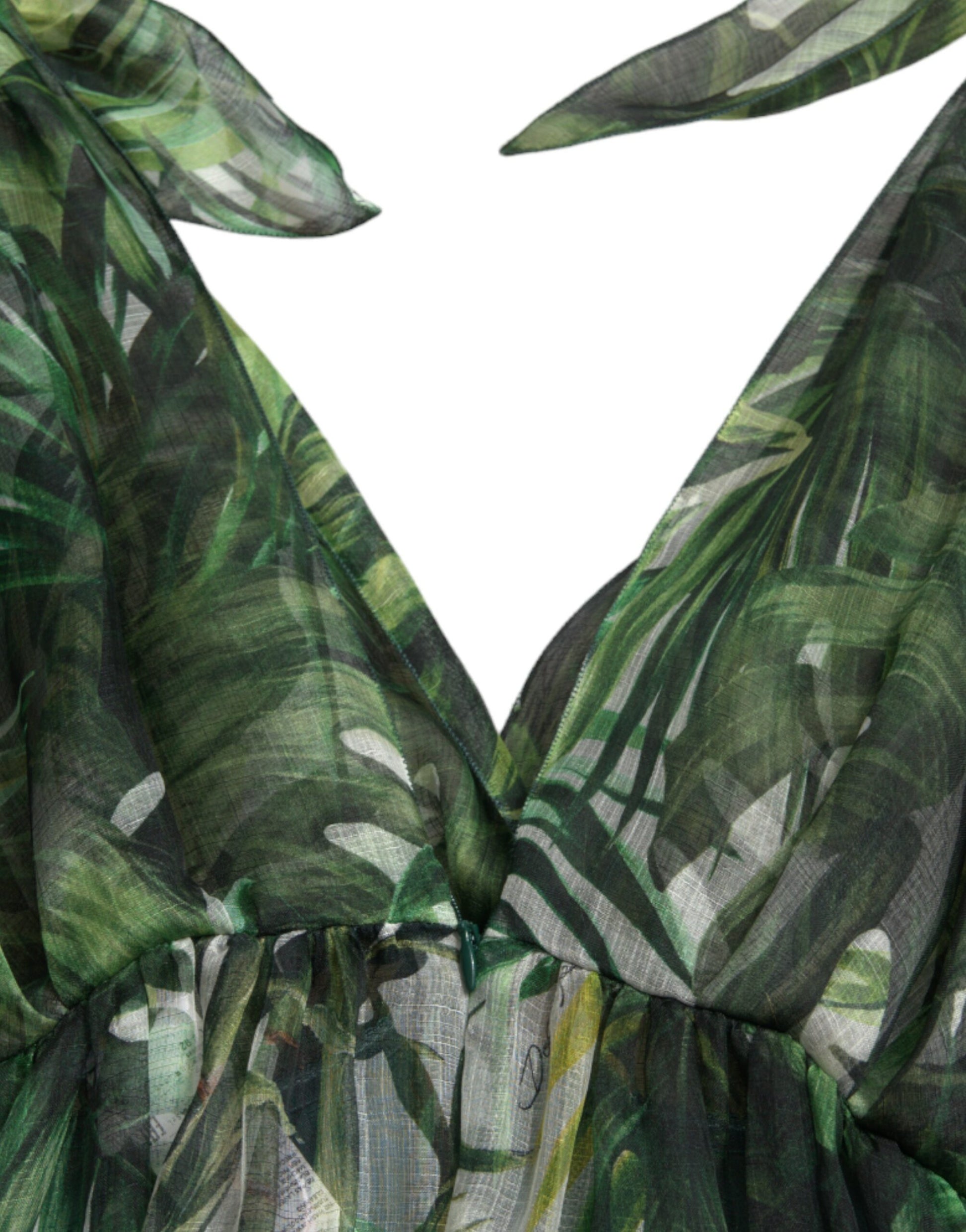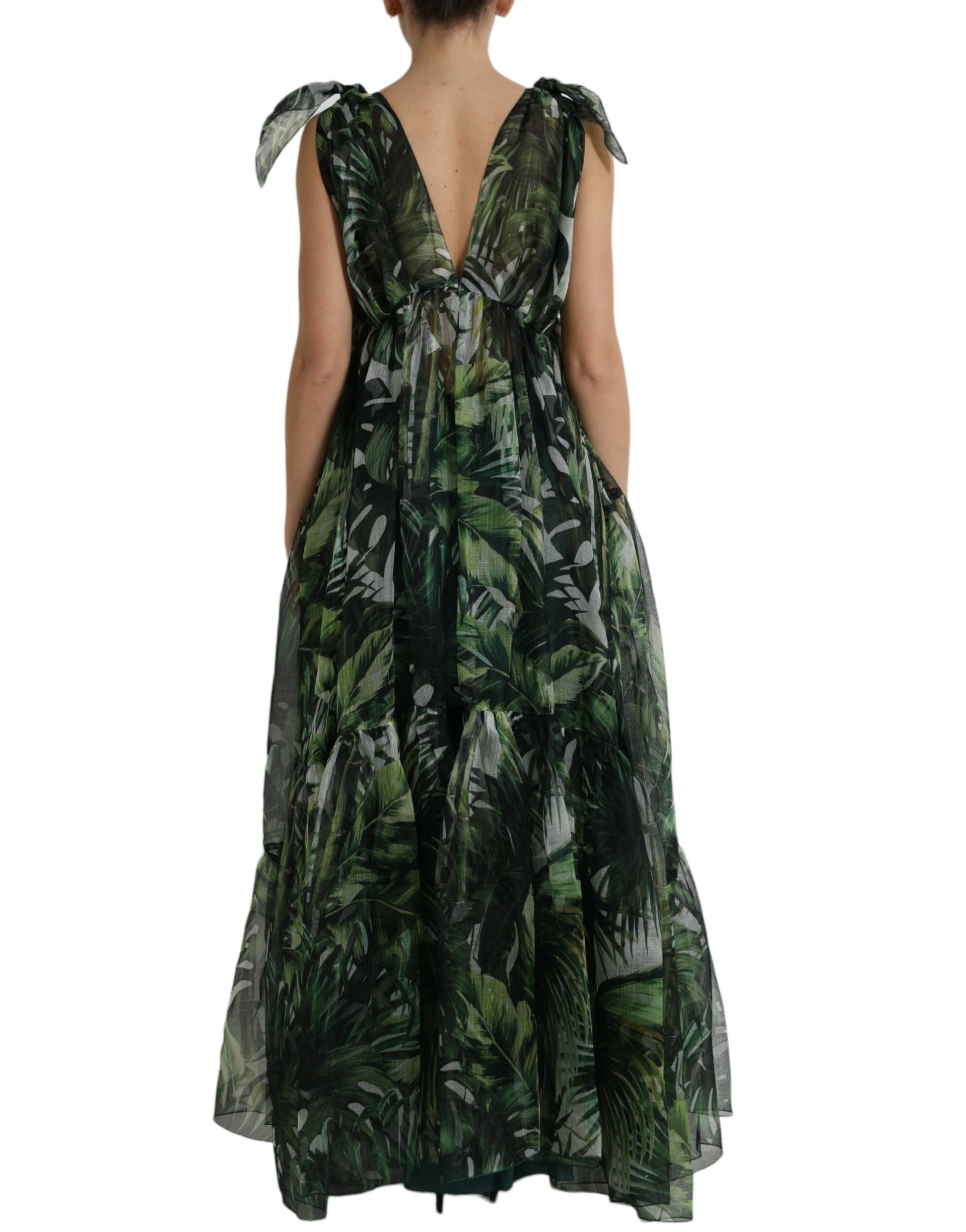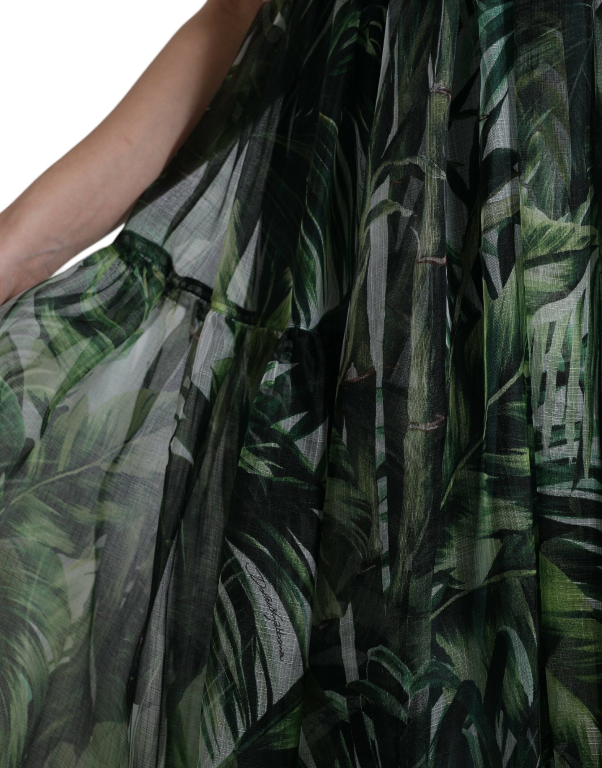 Dolce & Gabbana Green Flocked Leaf Georgette A-line Dress