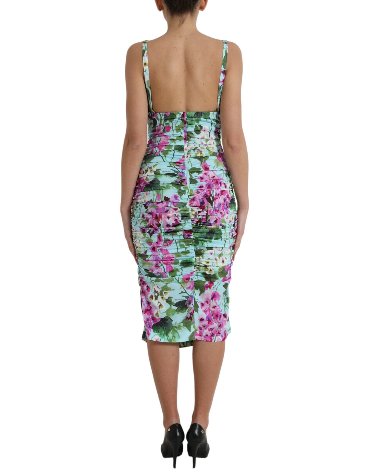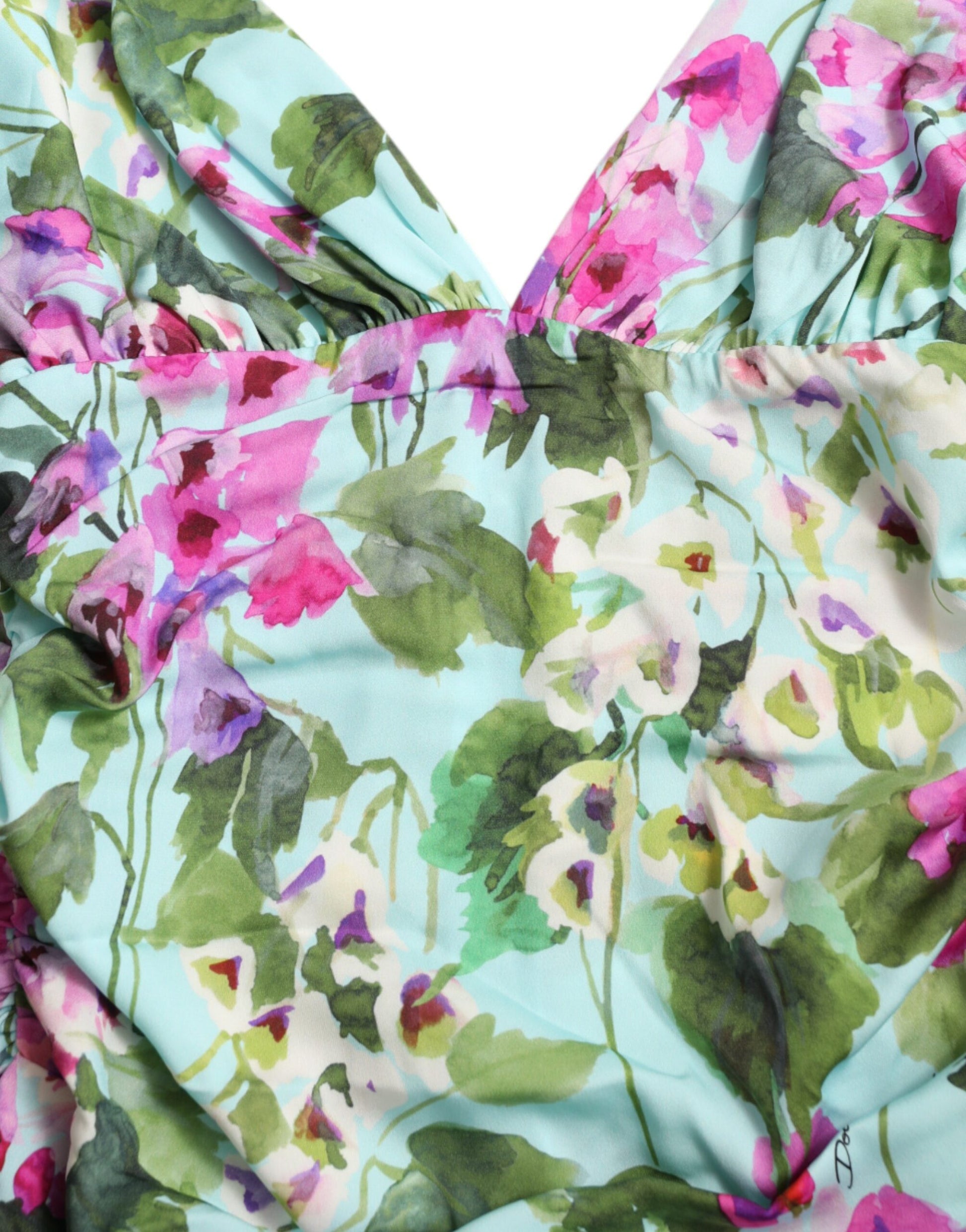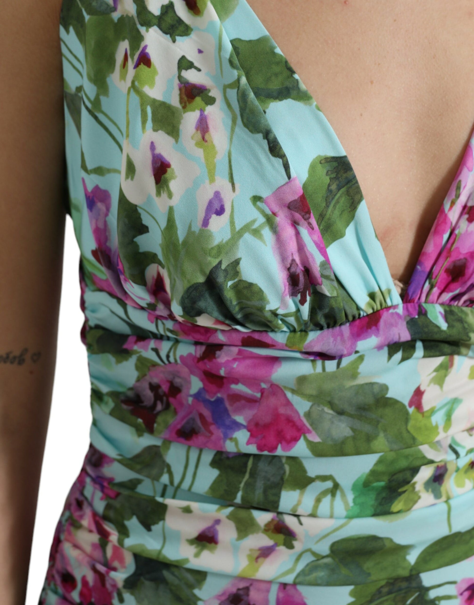 Dolce & Gabbana Multicolor Floral V-neck Sheath Midi Dress