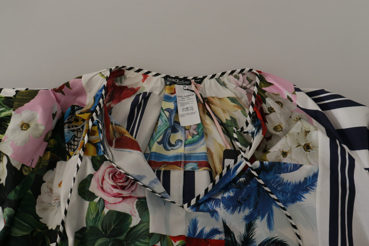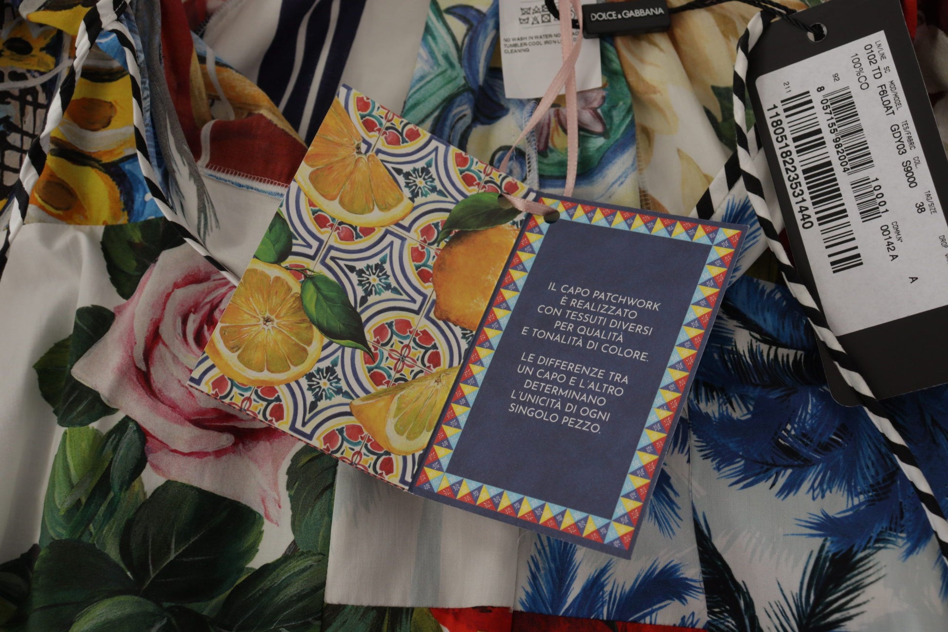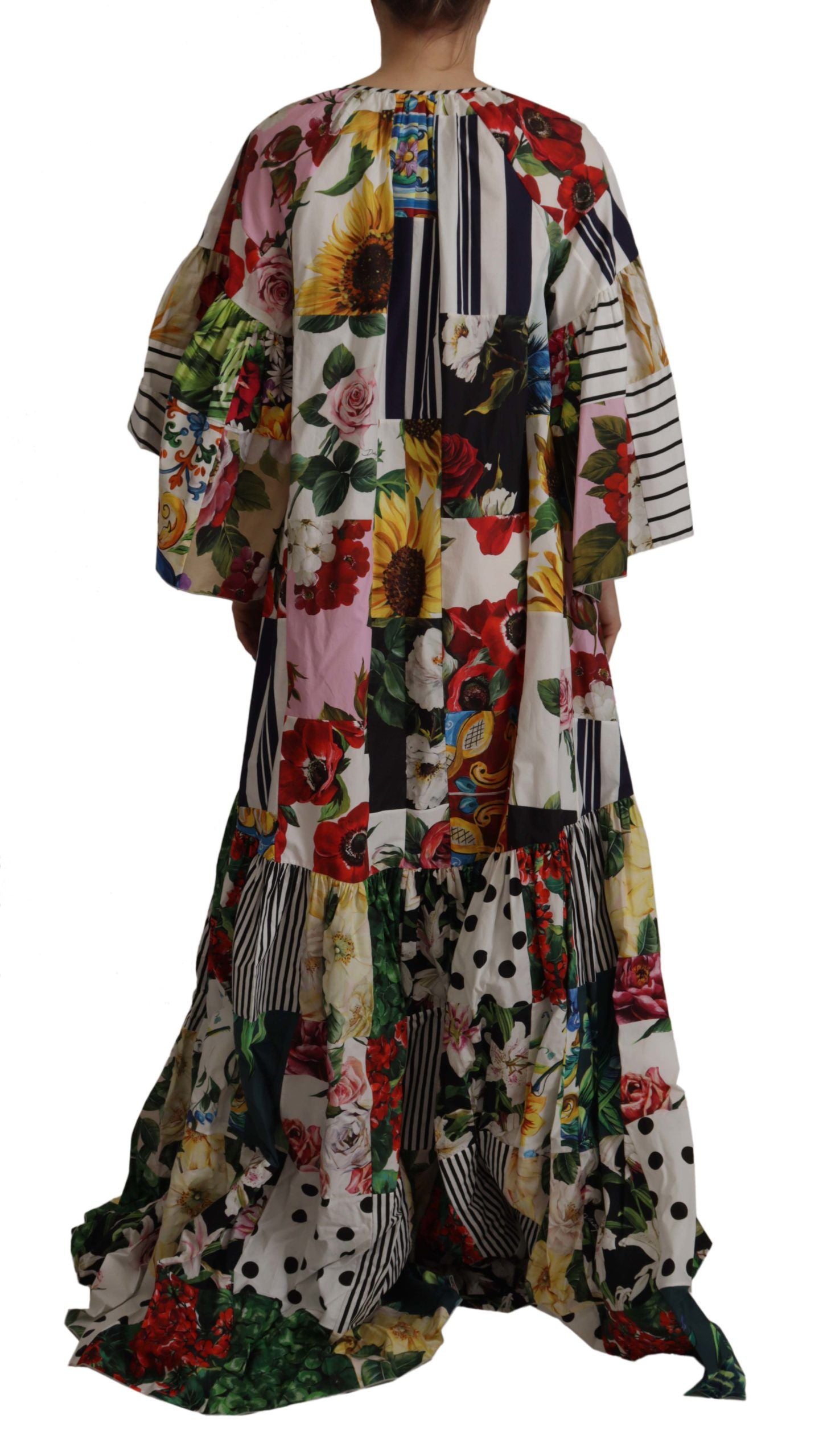 Dolce & Gabbana Multicolor Maxi Kaftan Patchwork Poplin Floral Dress