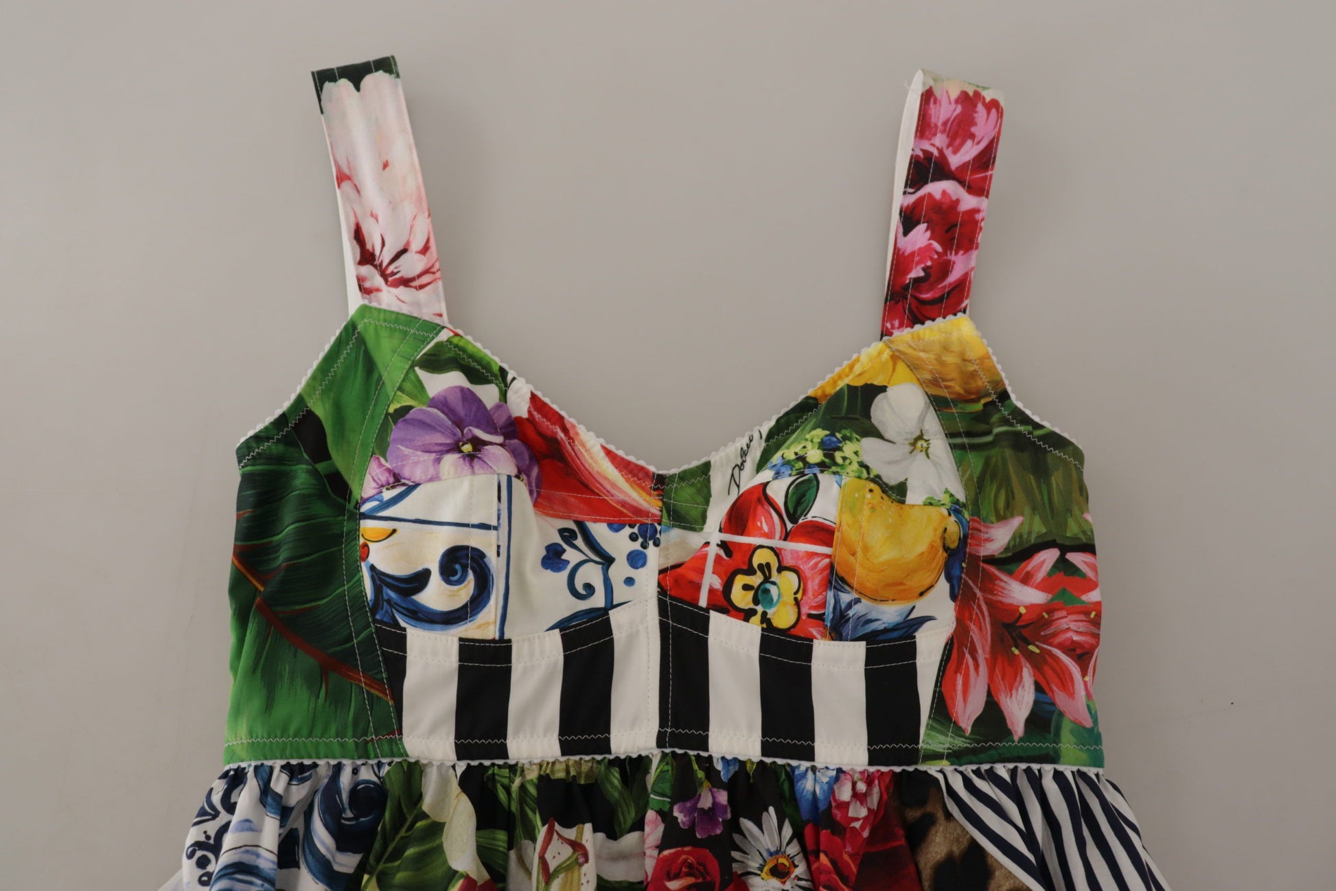Dolce & Gabbana Multicolor Pachwork Poplin Floral A-Line Mini Flared Dress