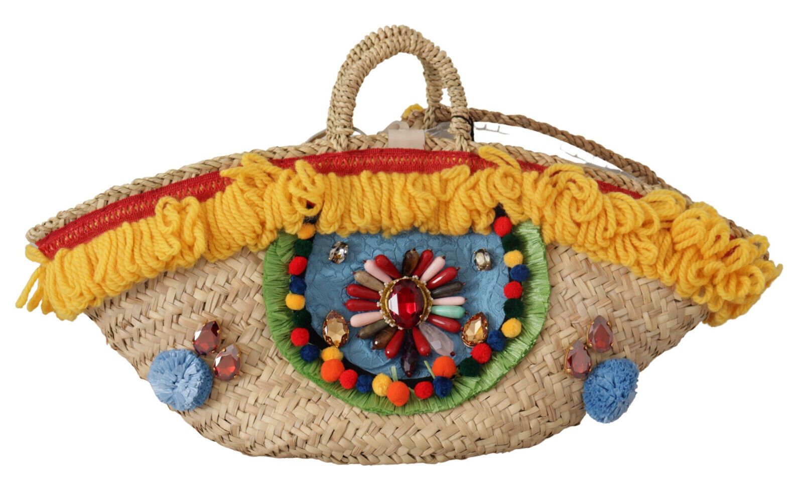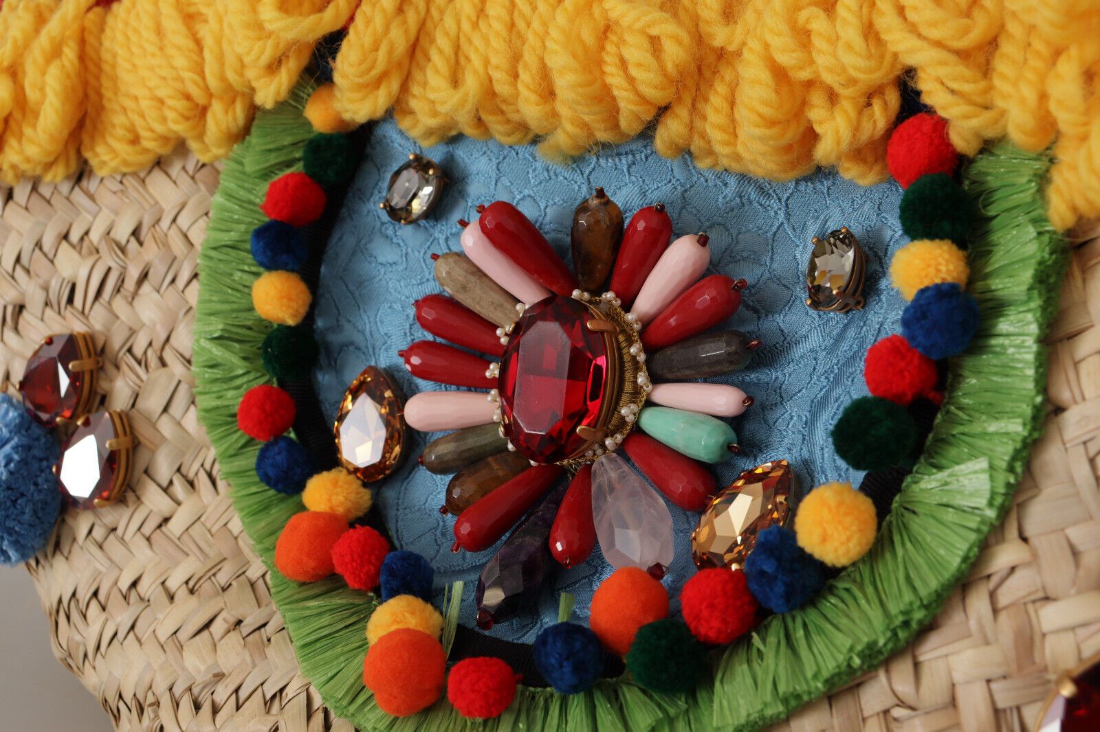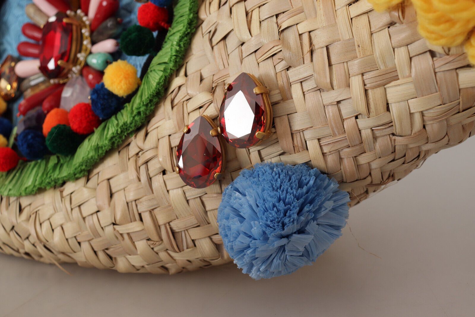 Dolce & Gabbana Multicolor PomPom Balls Crystals Hand Straw