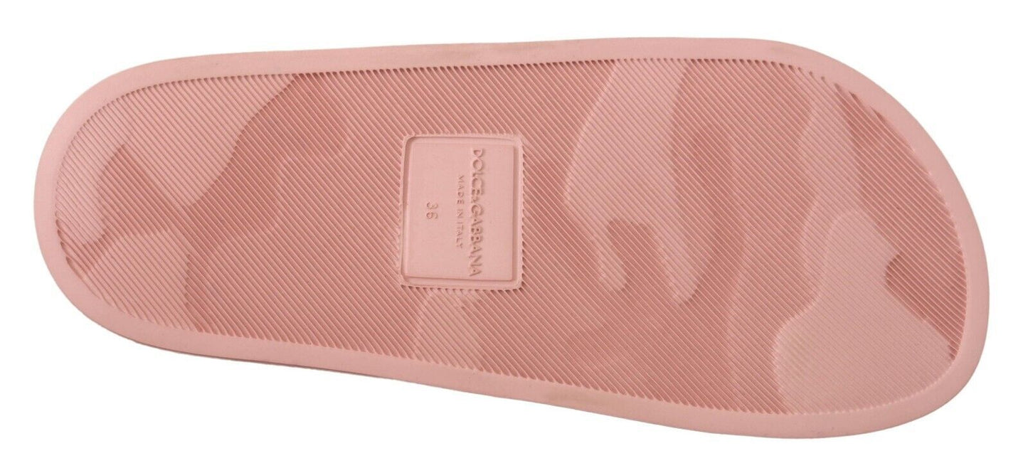 Dolce & Gabbana Pink Lace Crystal Sandals Slides Beach Shoes