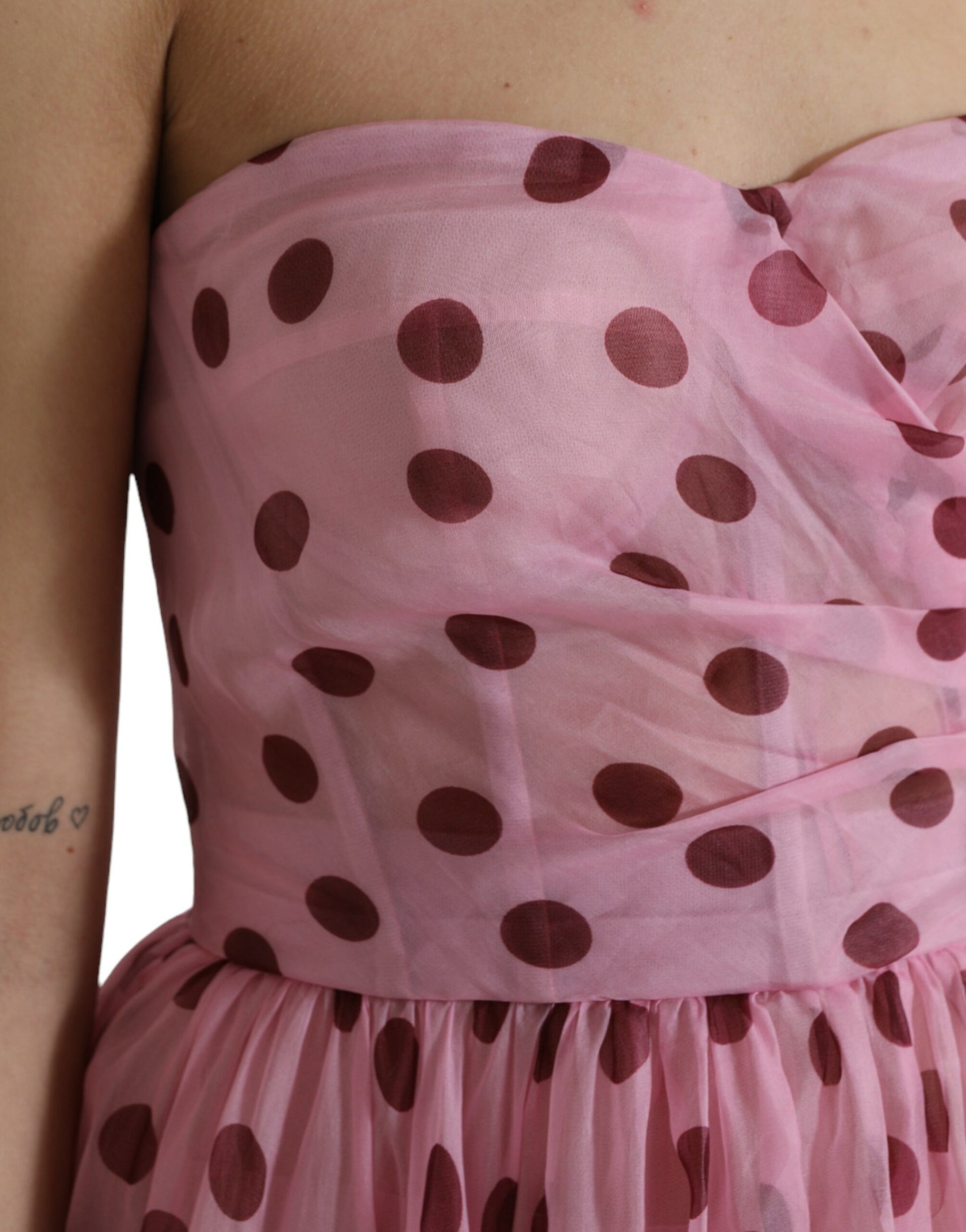 Dolce & Gabbana Pink Polka Dots A-line Strapless Gown Dress