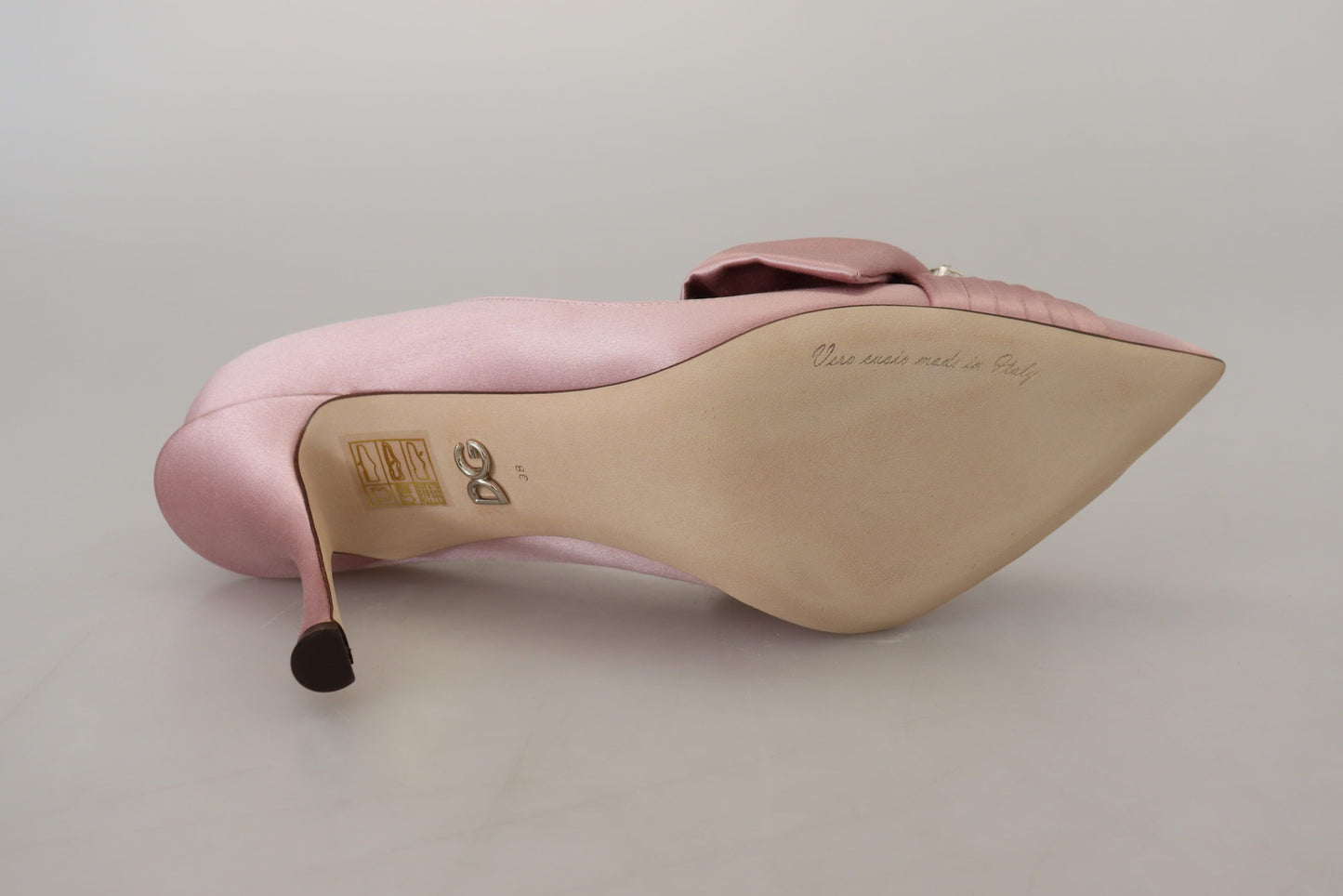 Dolce & Gabbana Pink Silk Clear Crystal Pumps Classic Shoes