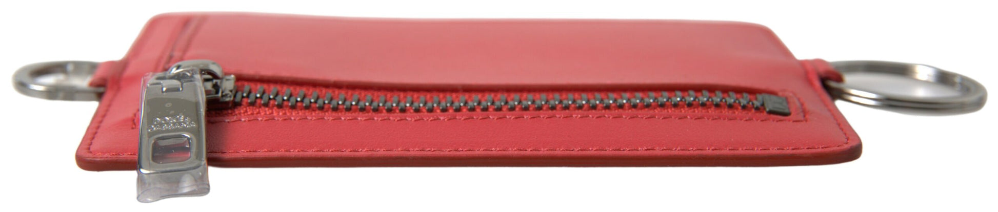 Dolce & Gabbana Red Leather Lanyard Logo Card Holder Men Wallet