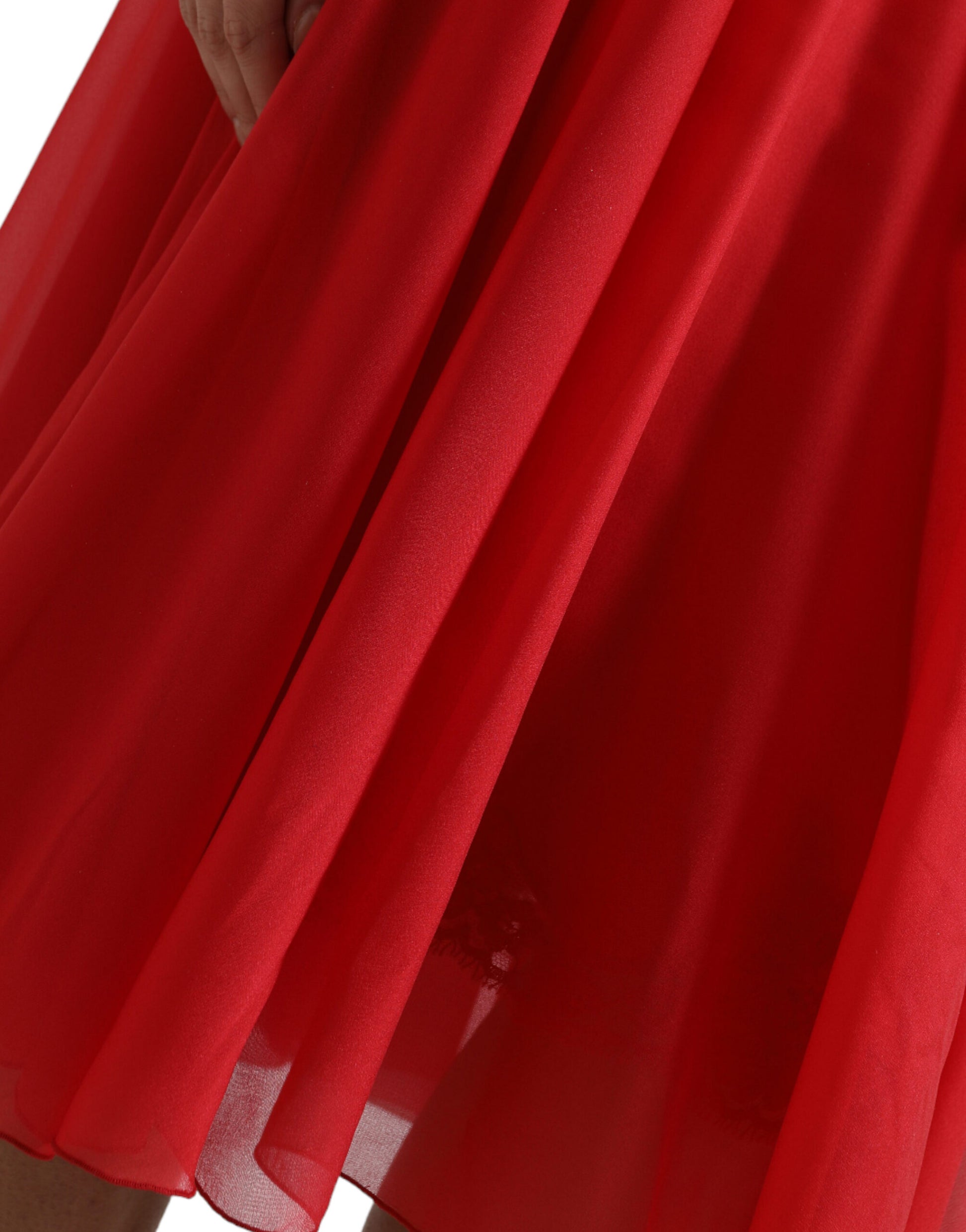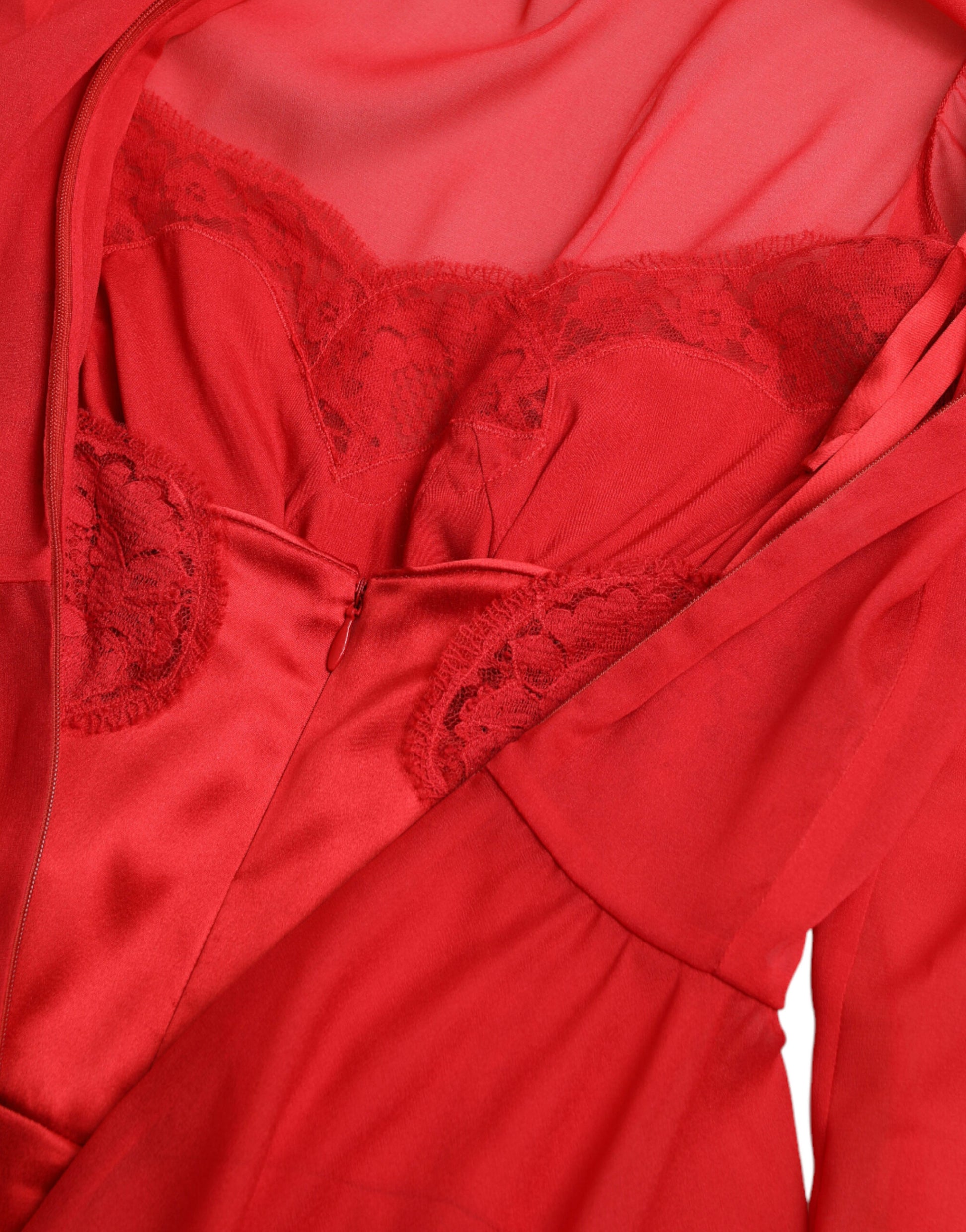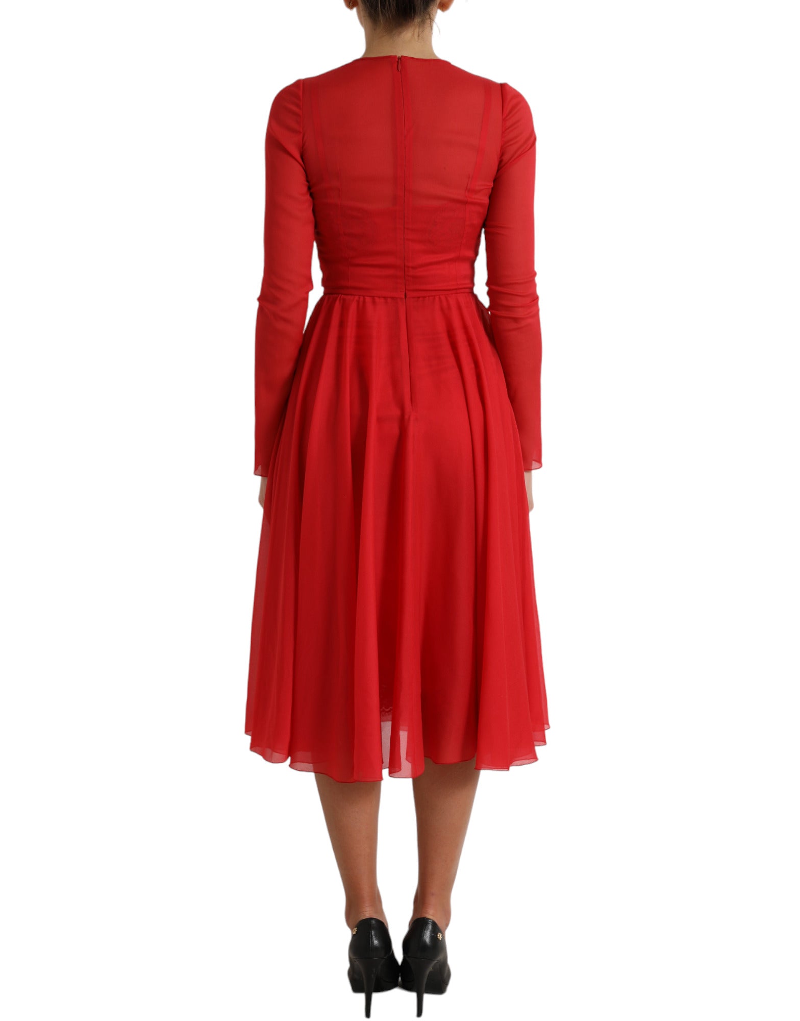 Dolce & Gabbana Red Silk Pleated Aline Long Sleeve Midi Dress