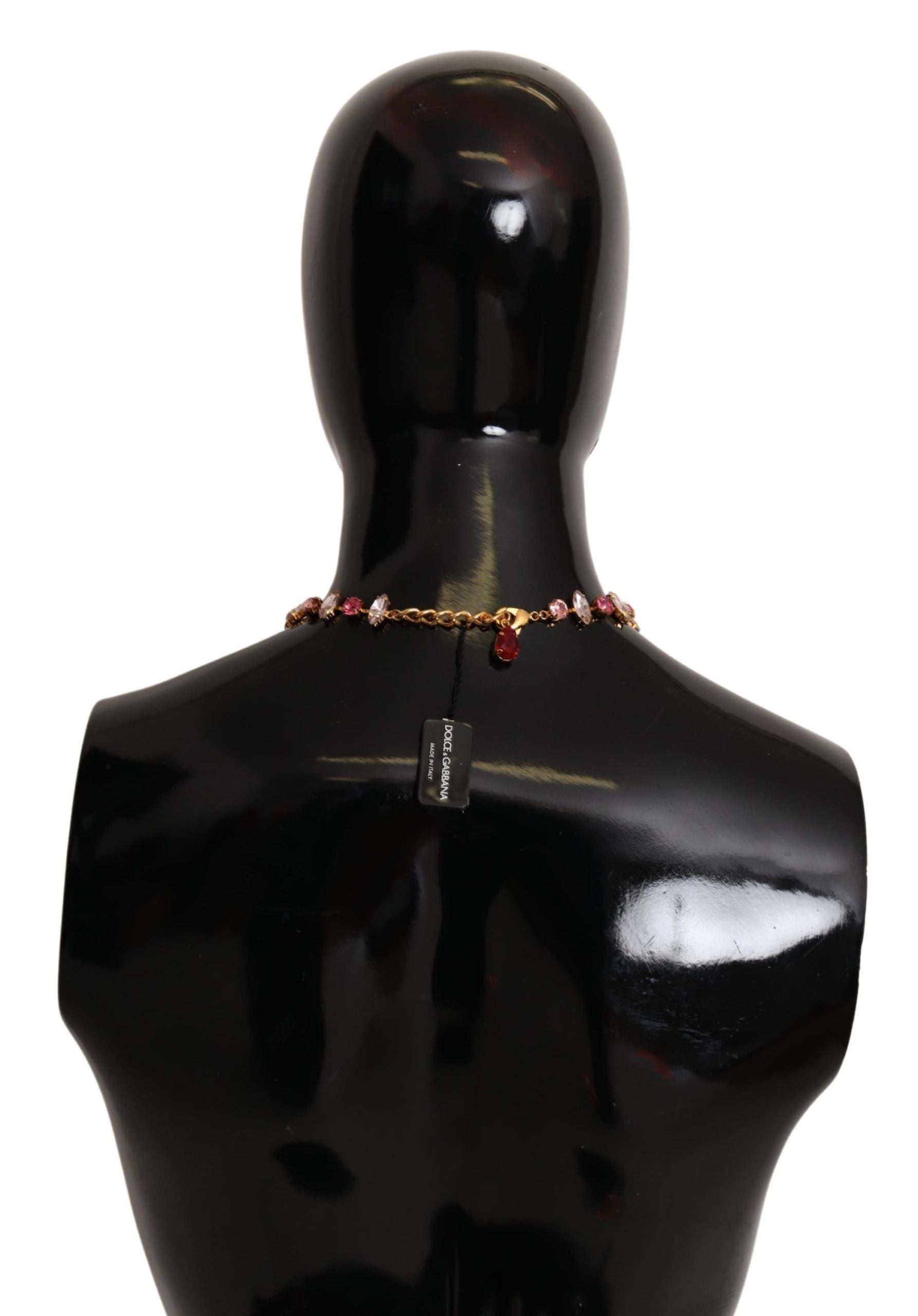 Dolce & Gabbana Rose Heart Star Chain Pink Red Gold Crystal Necklace