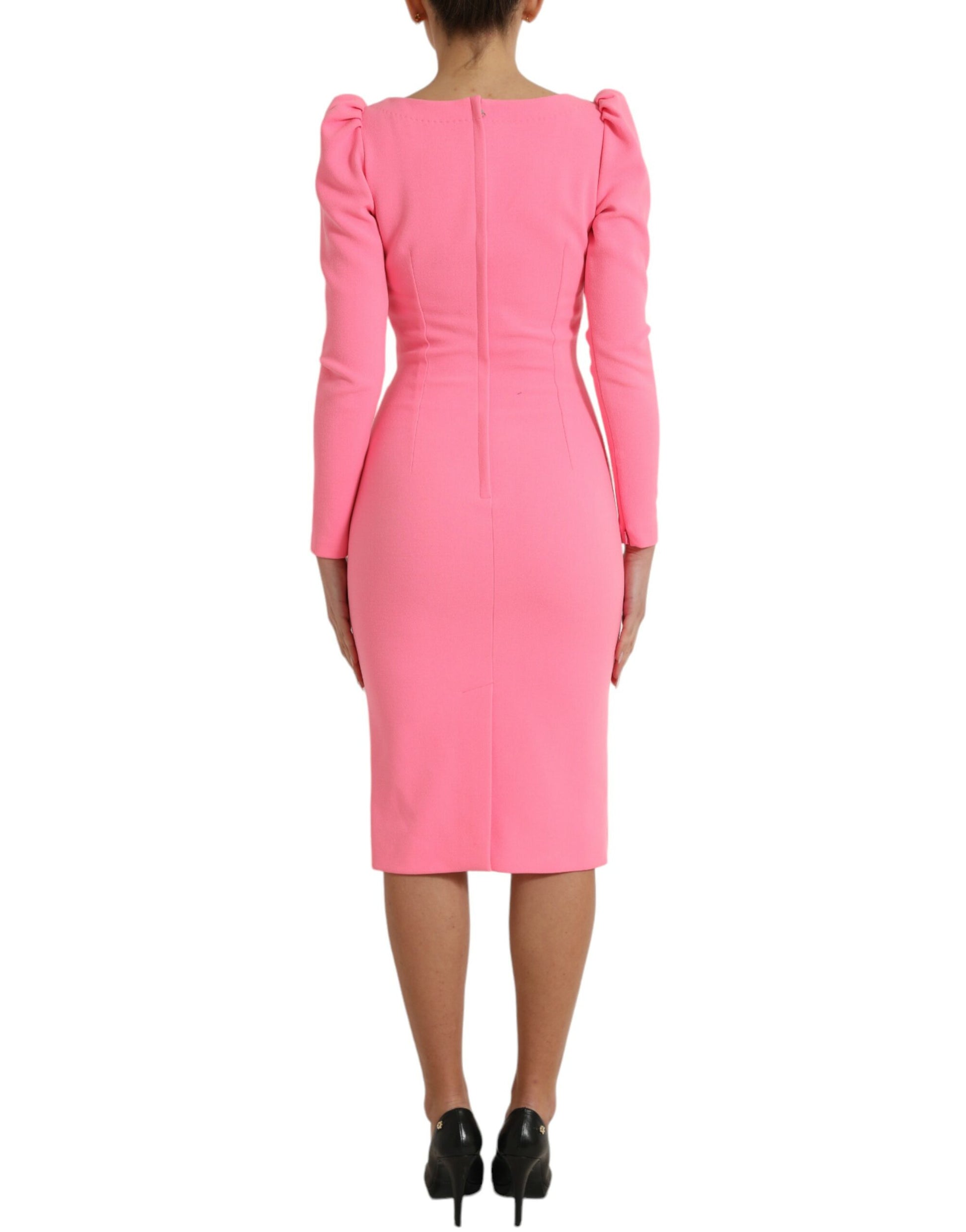 Dolce & Gabbana Rose Pink Long Sleeves Bodycon Midi Dress