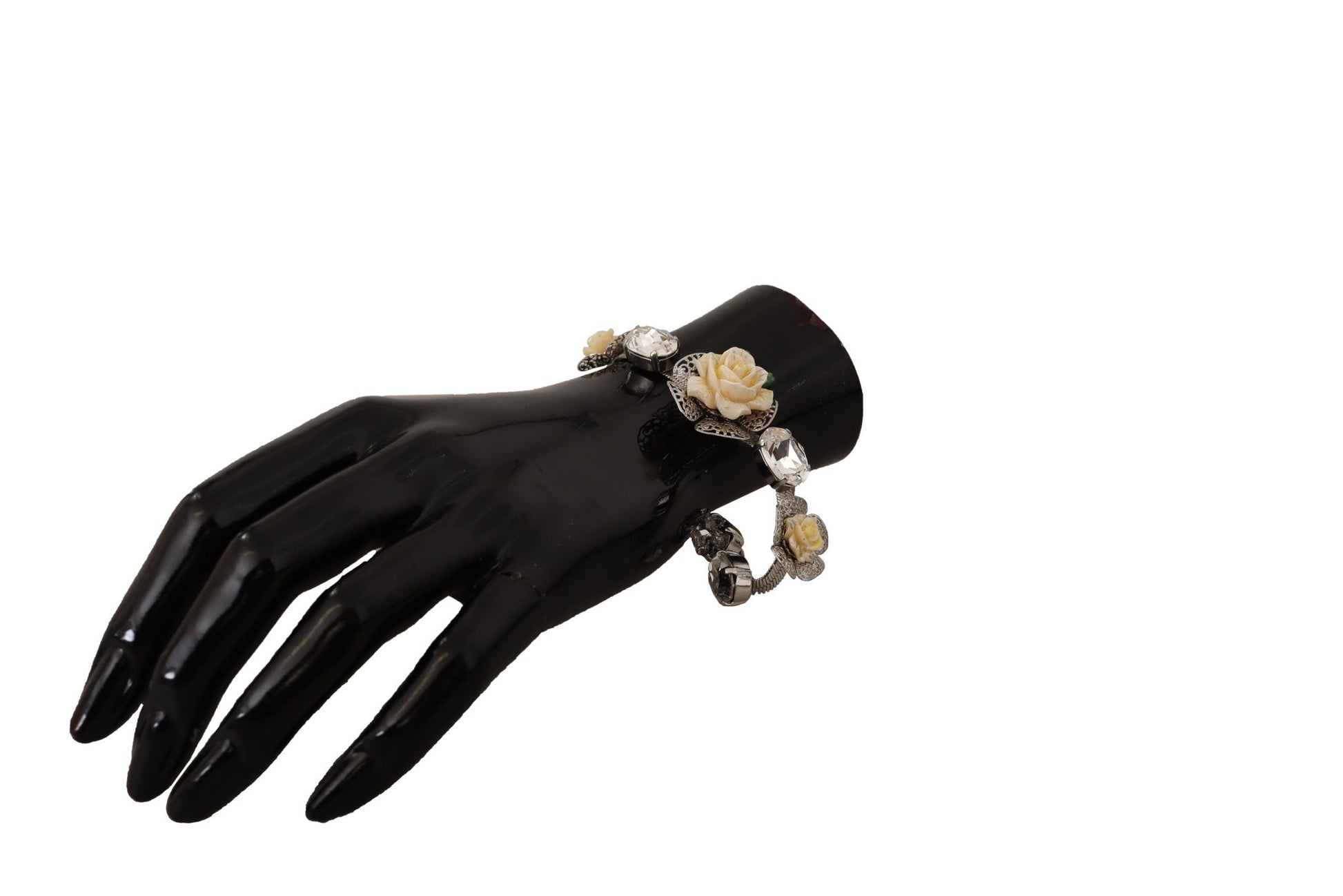 Dolce & Gabbana Silver Brass Chain Clear Crystal Floral Bracelet
