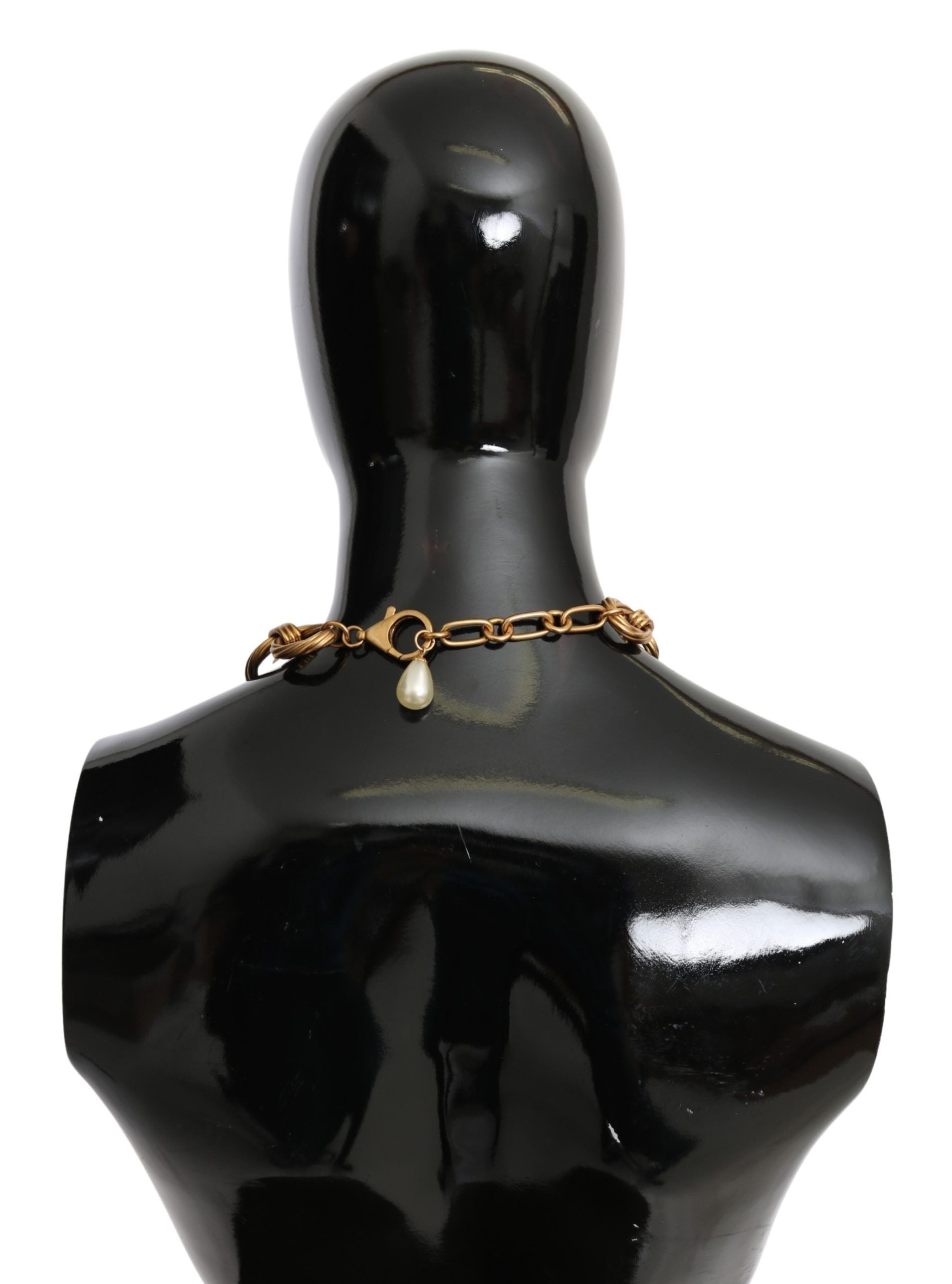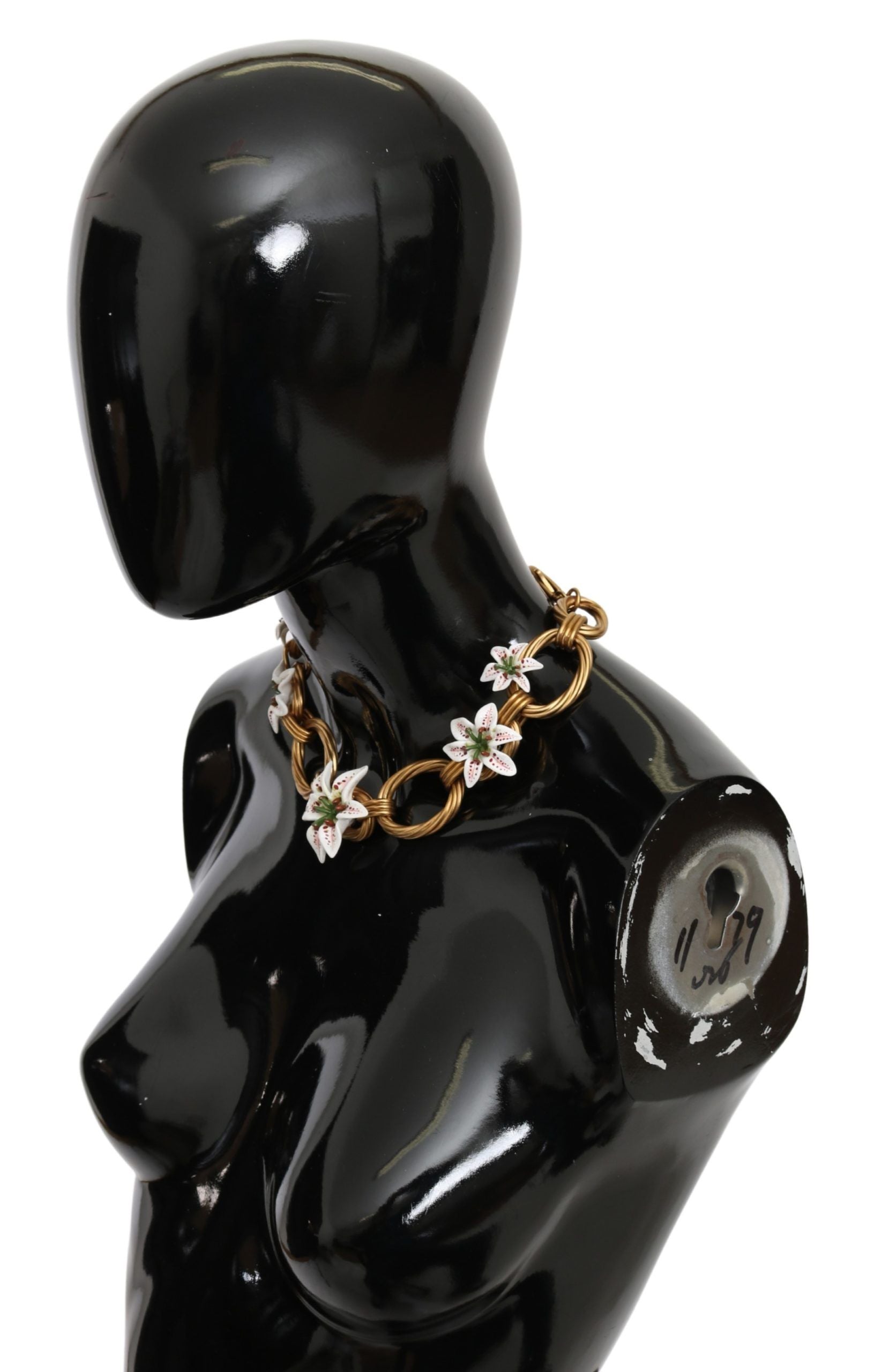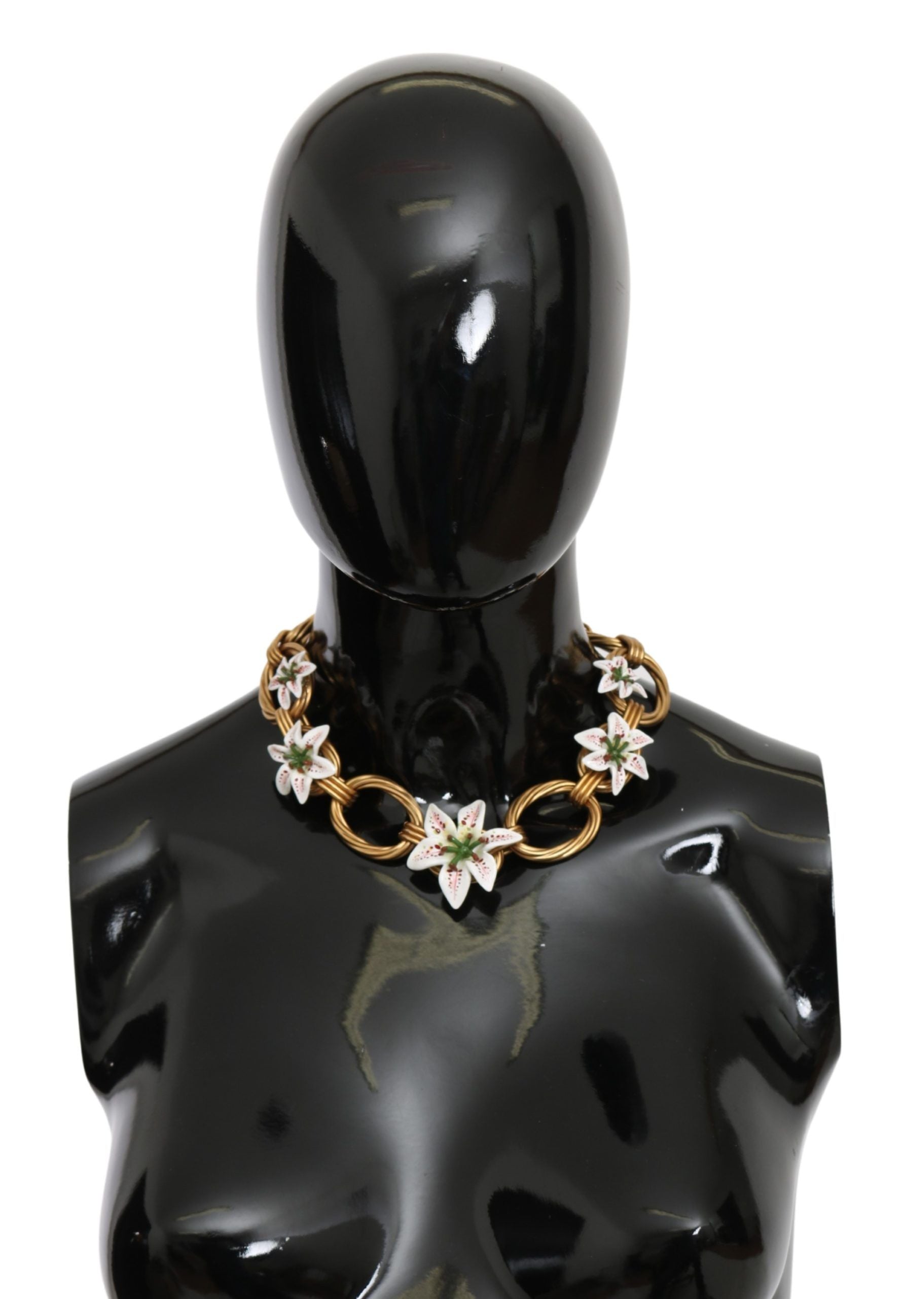 Dolce & Gabbana White Floral LILIUM Pendant Gold Chain Brass Pearl Necklace