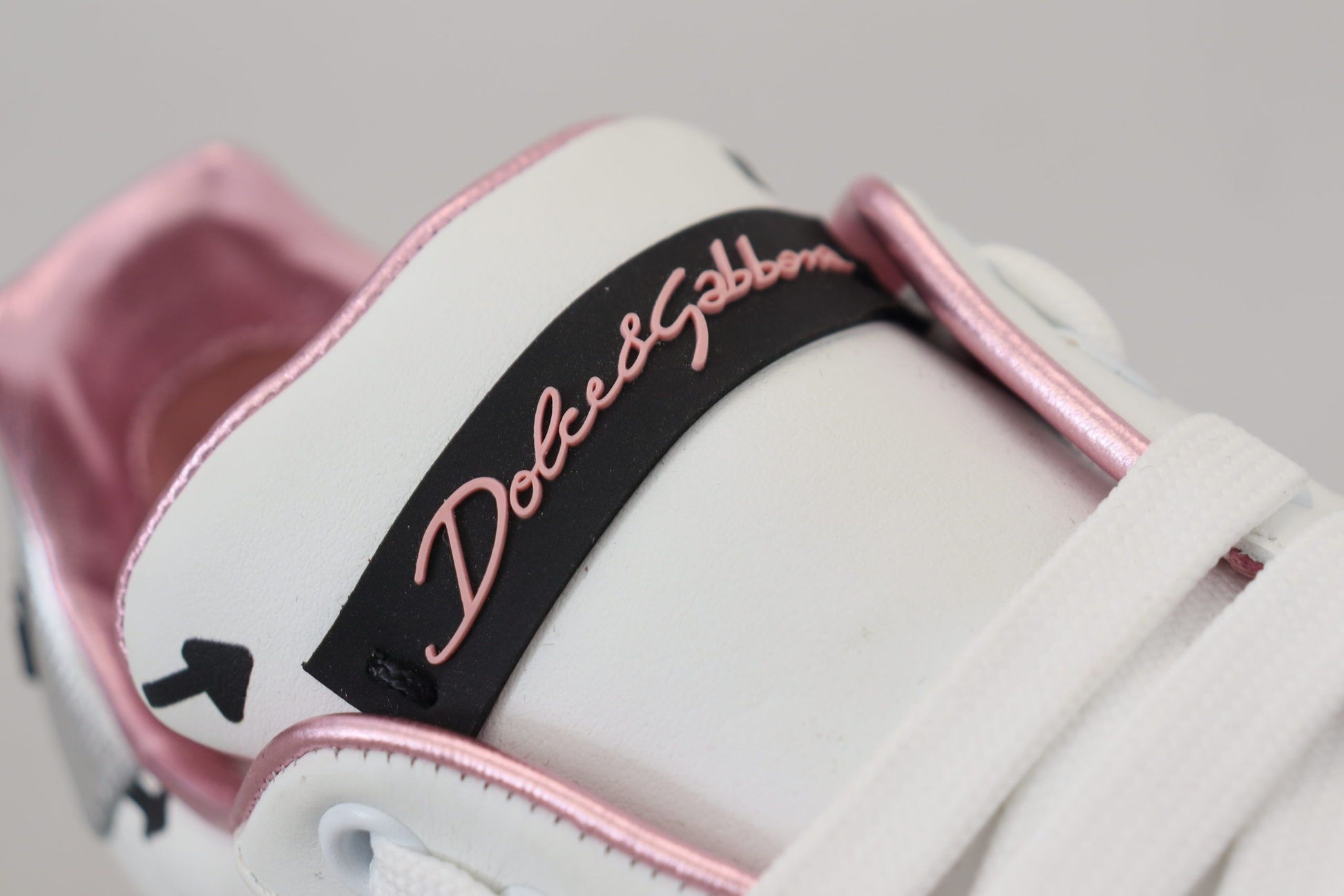 Dolce & Gabbana White Leather Crystal Queen Crown Sneakers Shoes