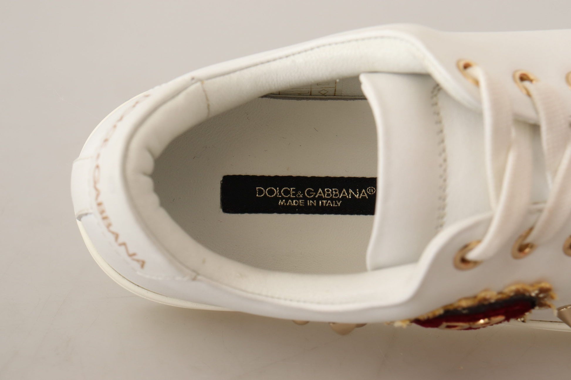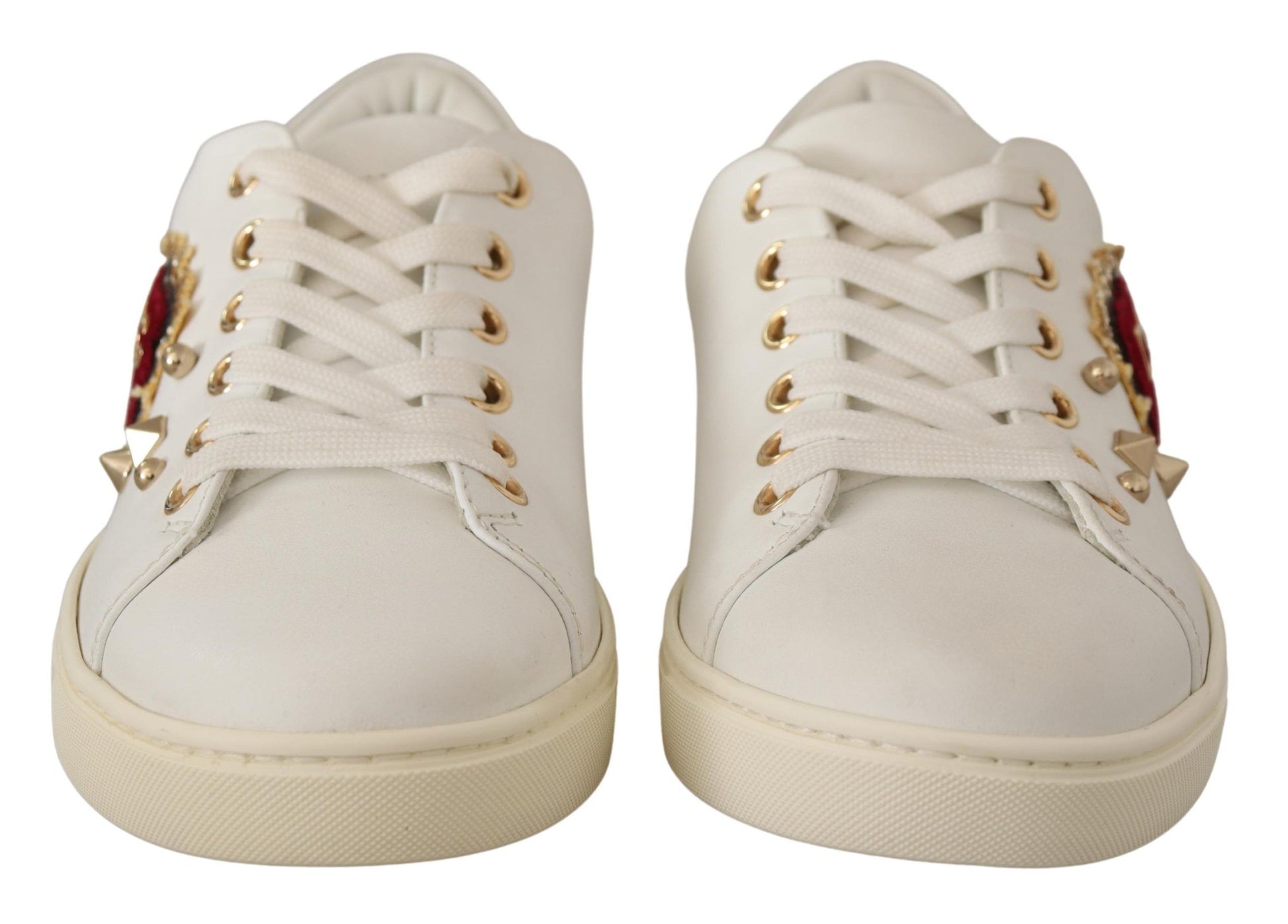Dolce & Gabbana White Leather Gold Red Heart Sneakers Shoes