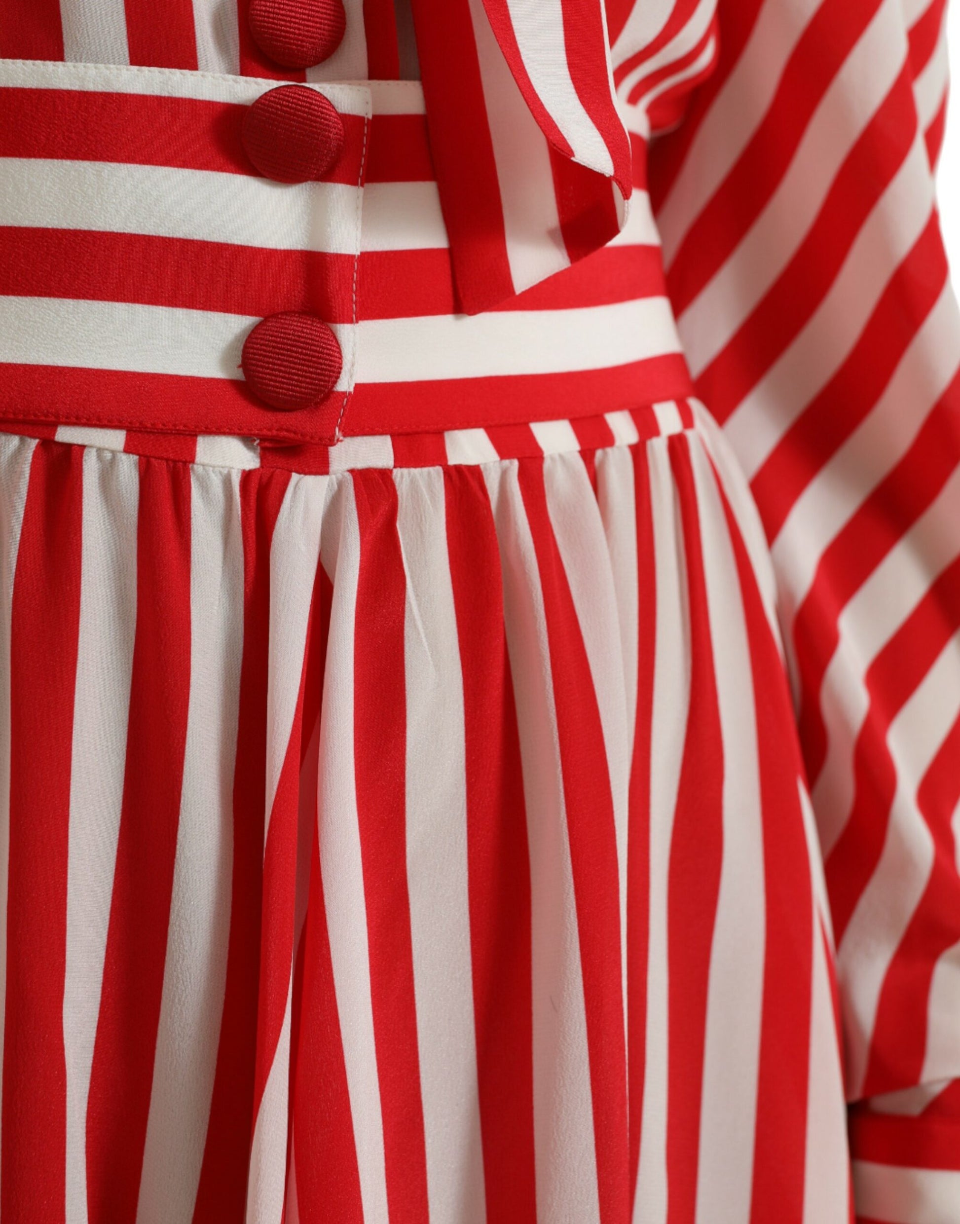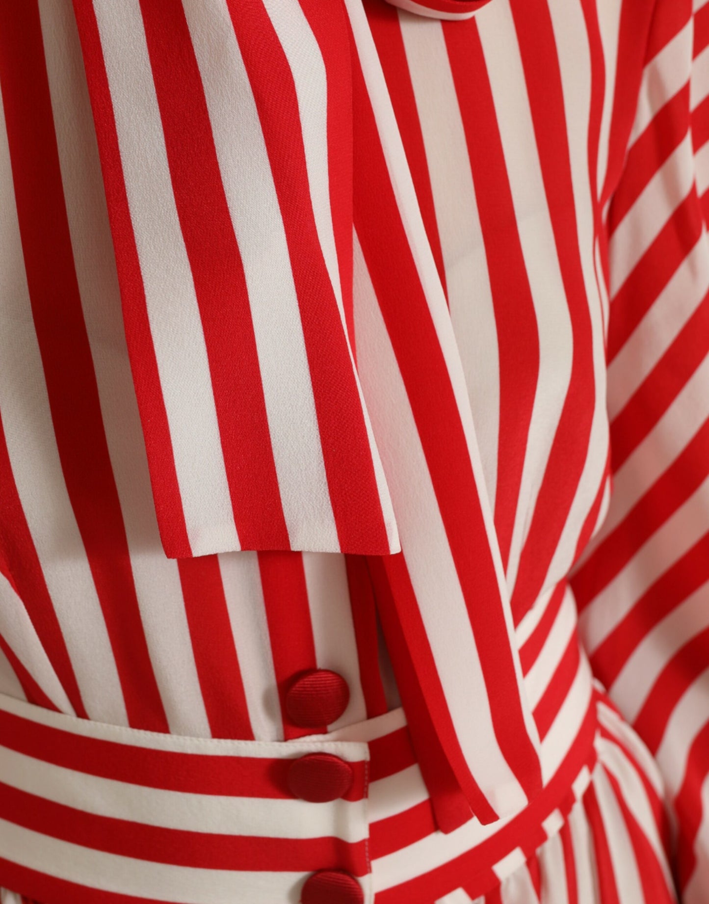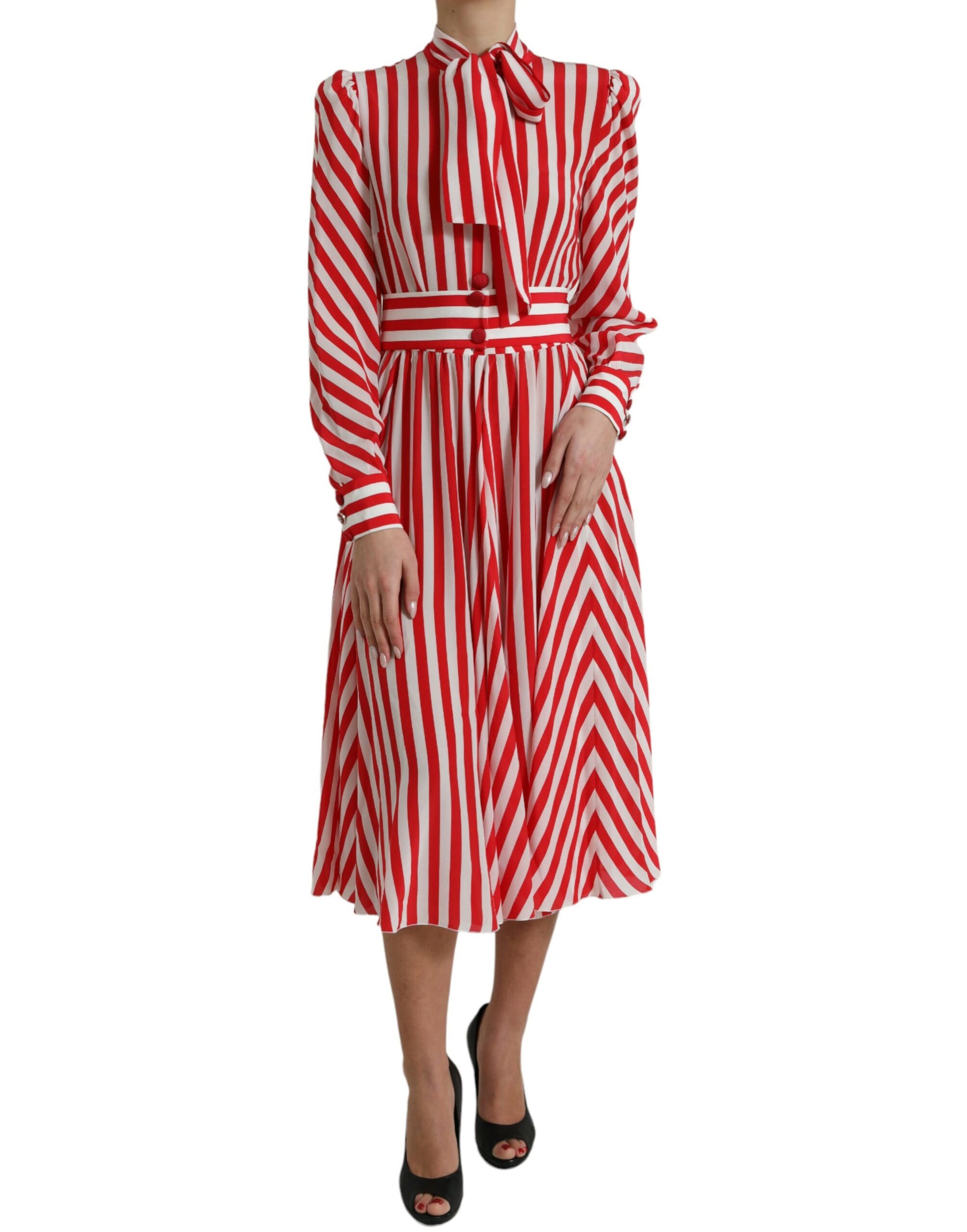 Gorgeous brand new with tags, 100% Authentic Dolce & Gabbana A-line striped maxi dress with back zipper closure and ascot collar.