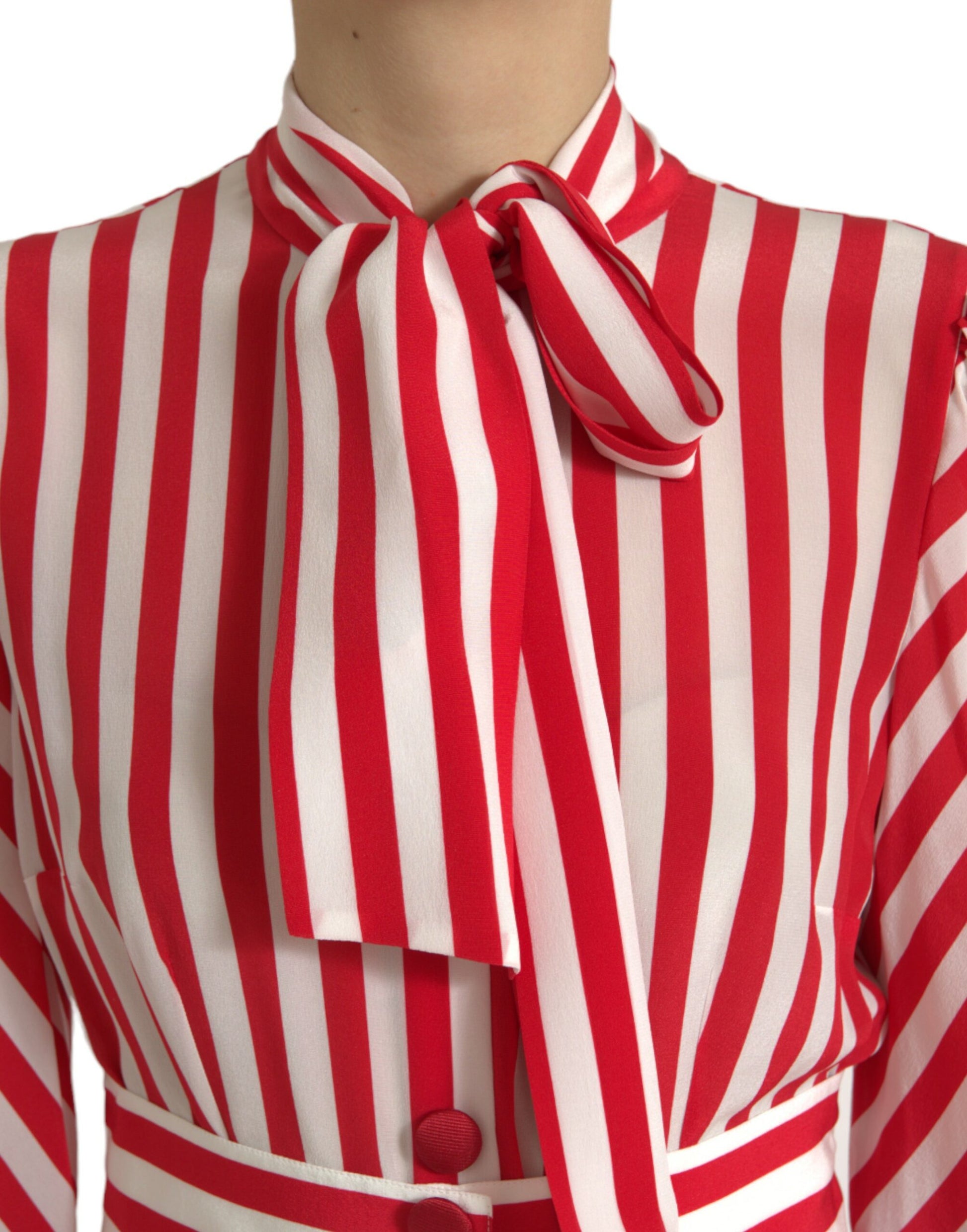 Dolce & Gabbana White Red Silk A-Line Shift Gown Maxi Dress