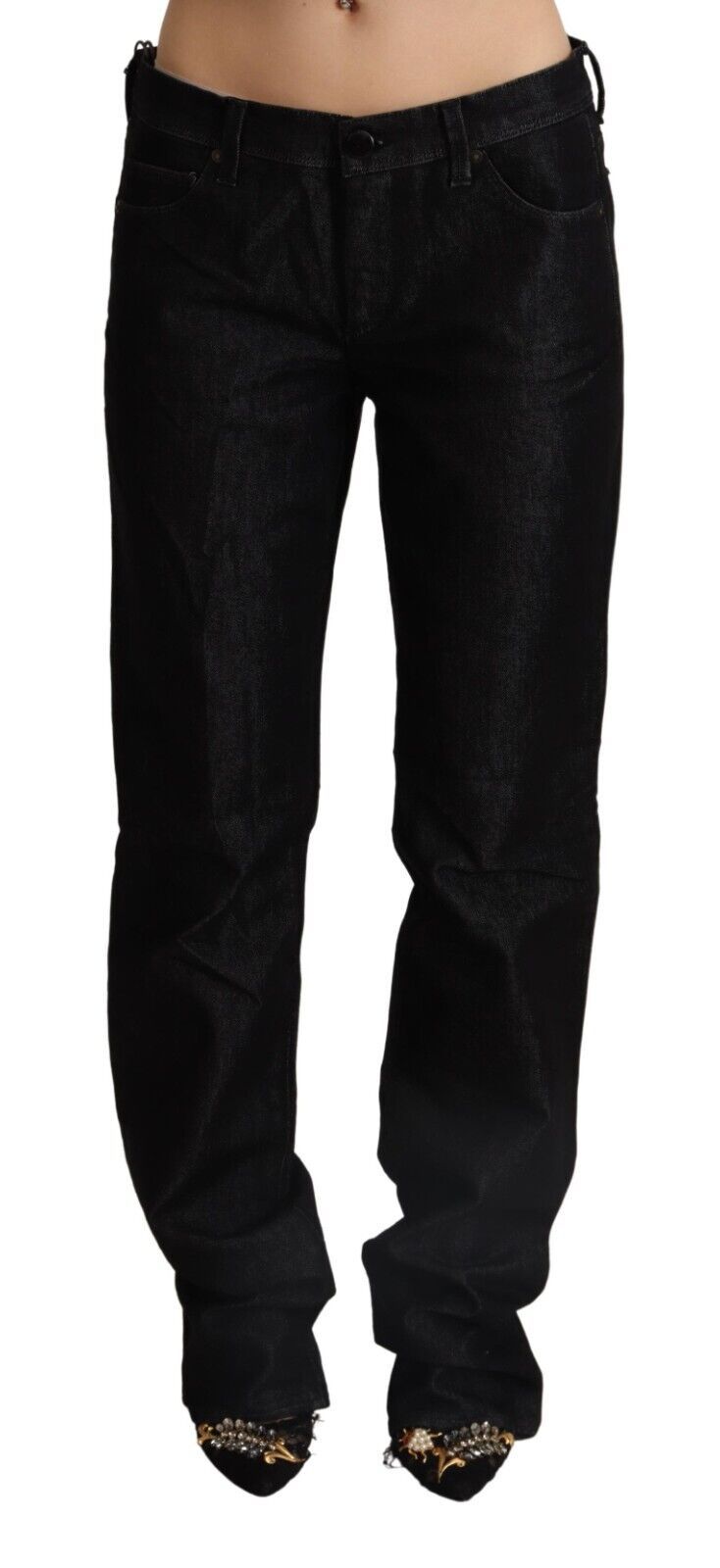 Ermanno Scervino Black Low Waist Cotton Denim Straight Jeans