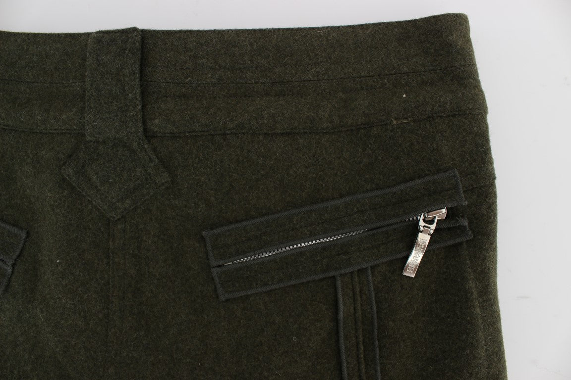 Ermanno Scervino Green Wool Blend Loose Fit Cargo Pants