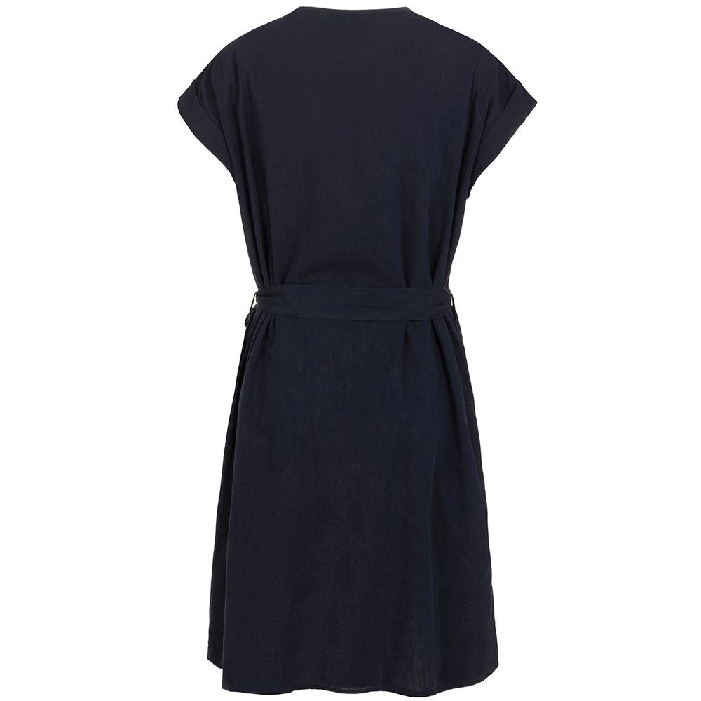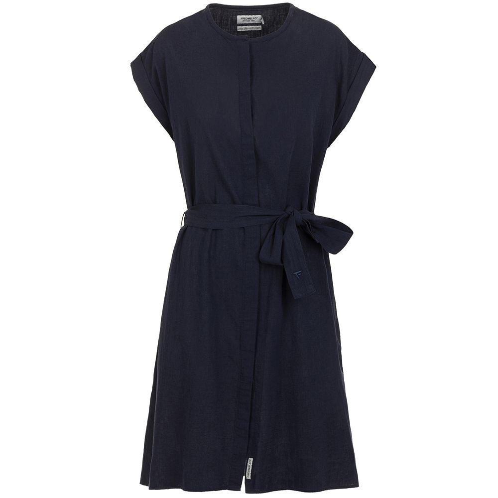 Fred Mello women’s sleeveless dress in cotton and linen blend with button closure, ribbon belt with loops