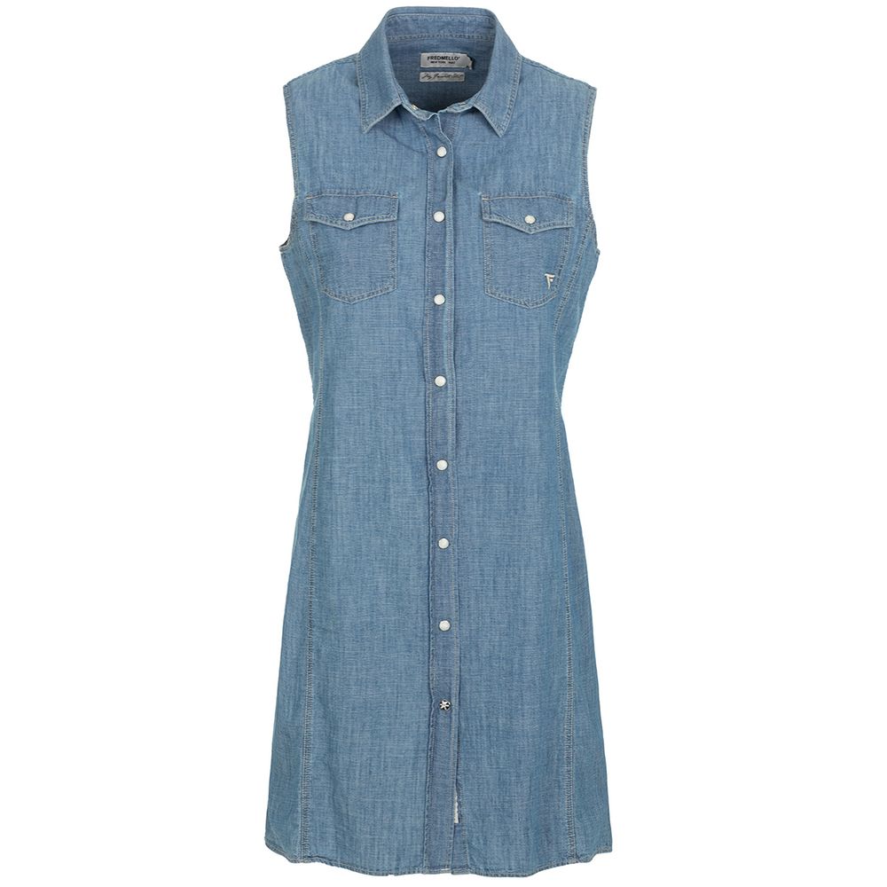 Fred Mello women’s sleeveless denim dress, button closure and classic collar