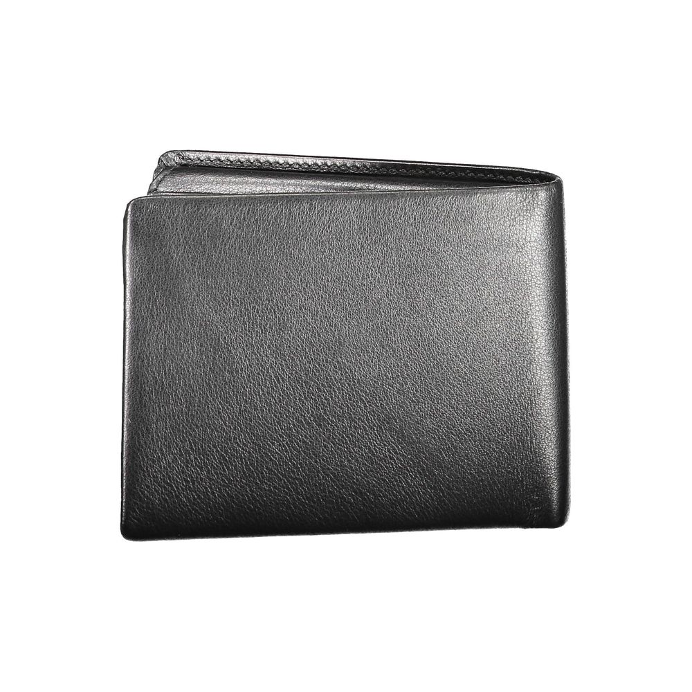 leather wallet, 2 compartments, internal spaces formed by card, coin pocket, logo
