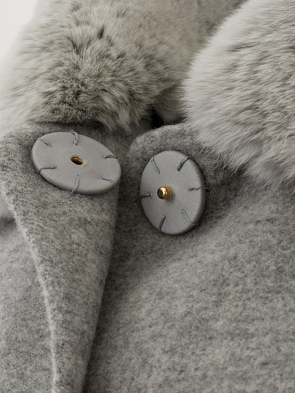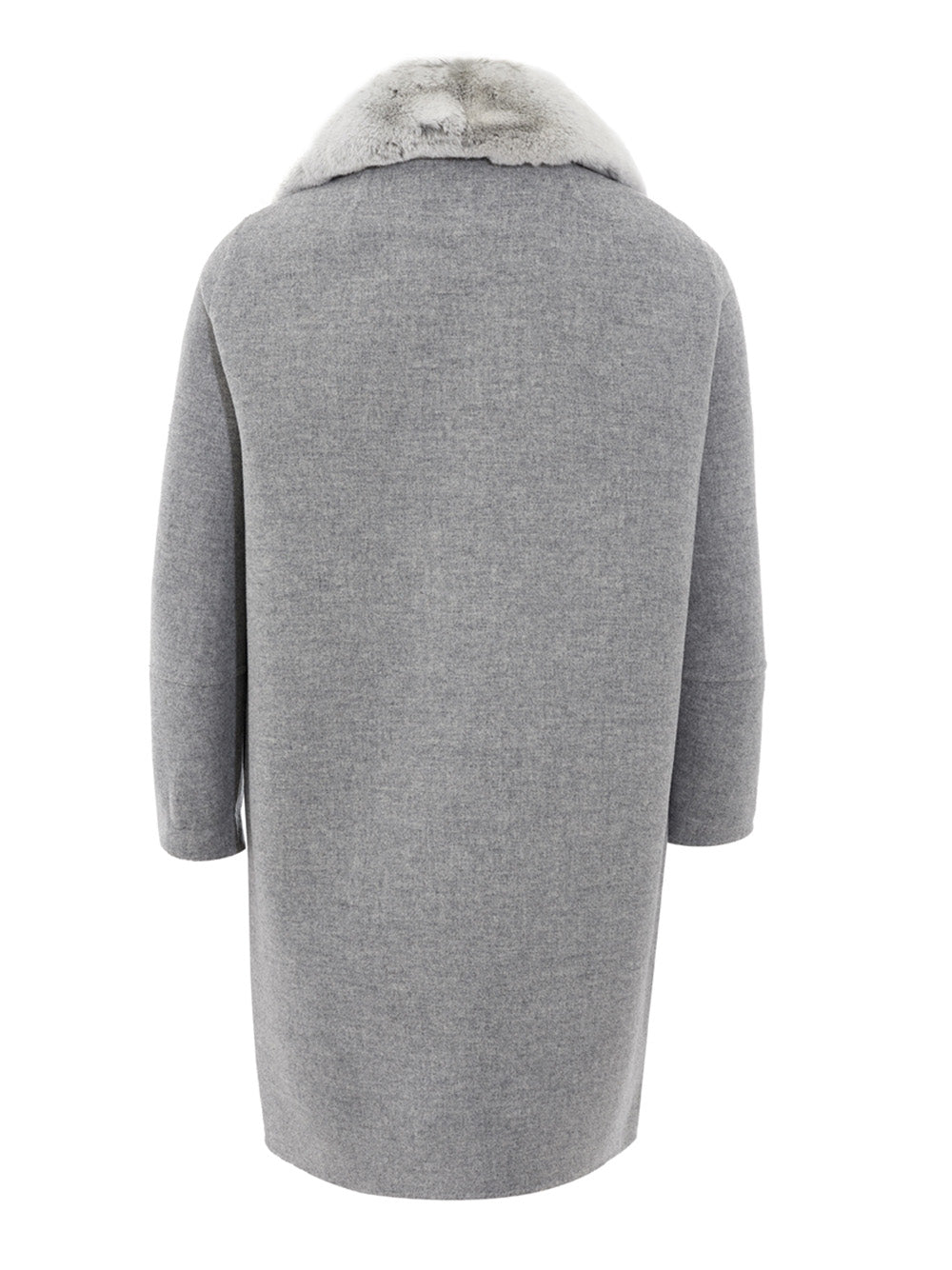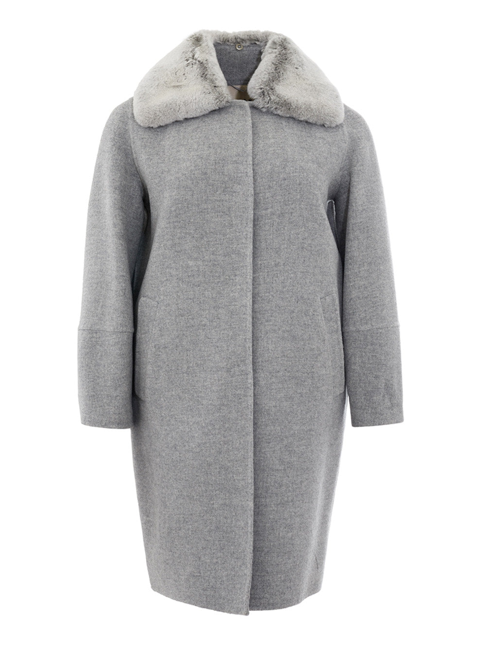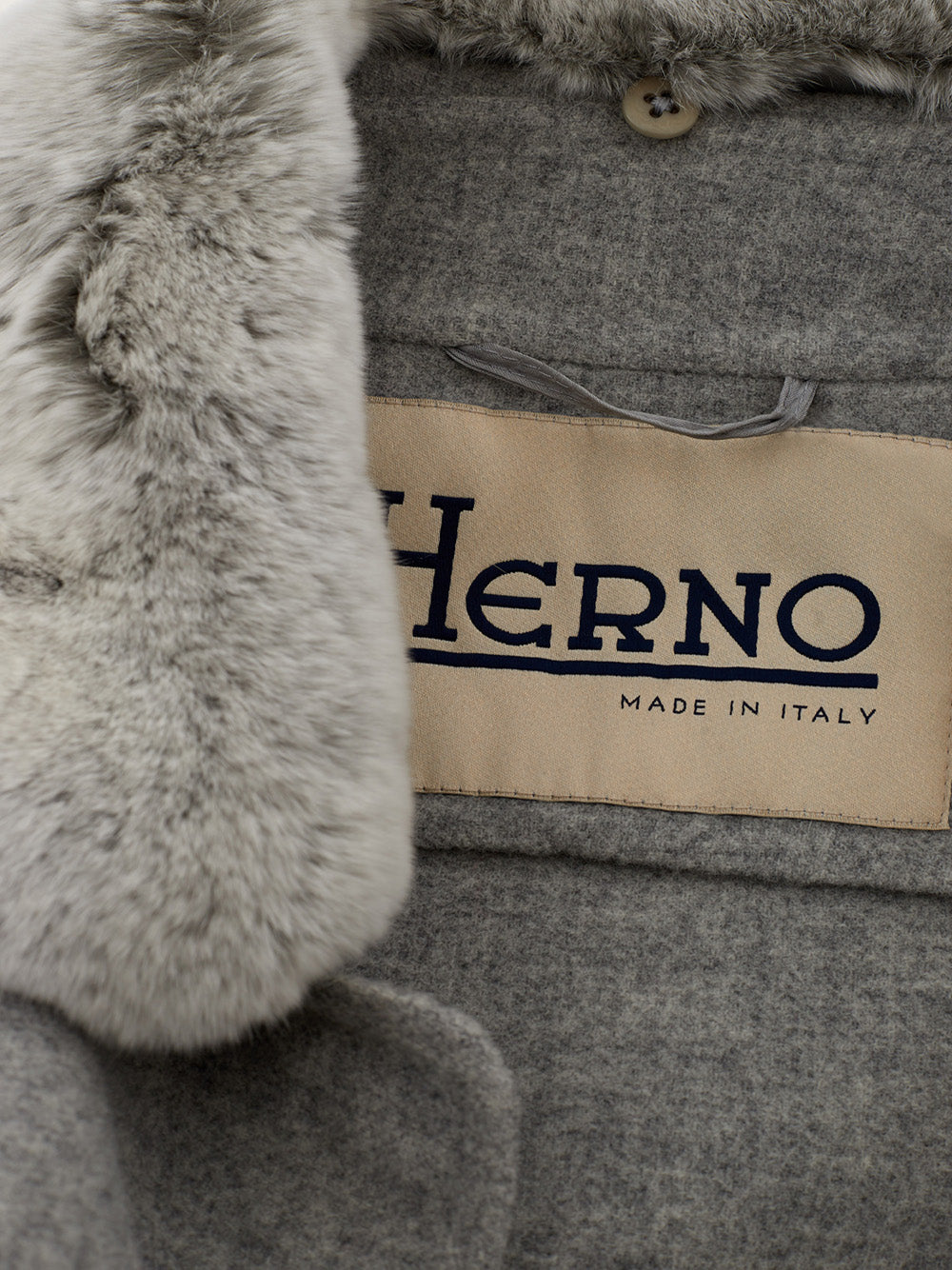 Gorgeous brand new with tags, 100% Authentic Herno. Wool grey coat with fur collar, front covered buttons closure, two side pockets, classic fit, Lapin removable collar