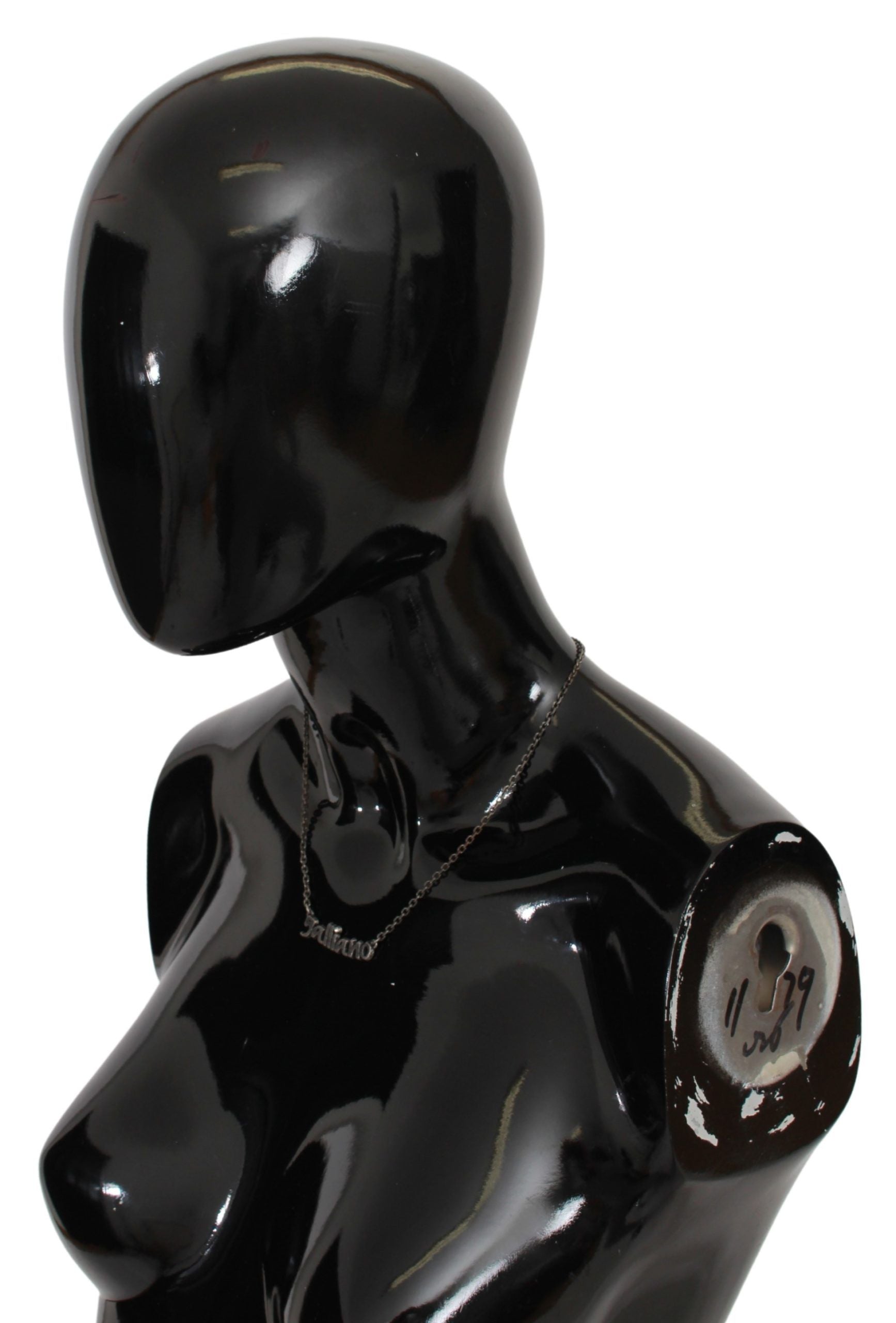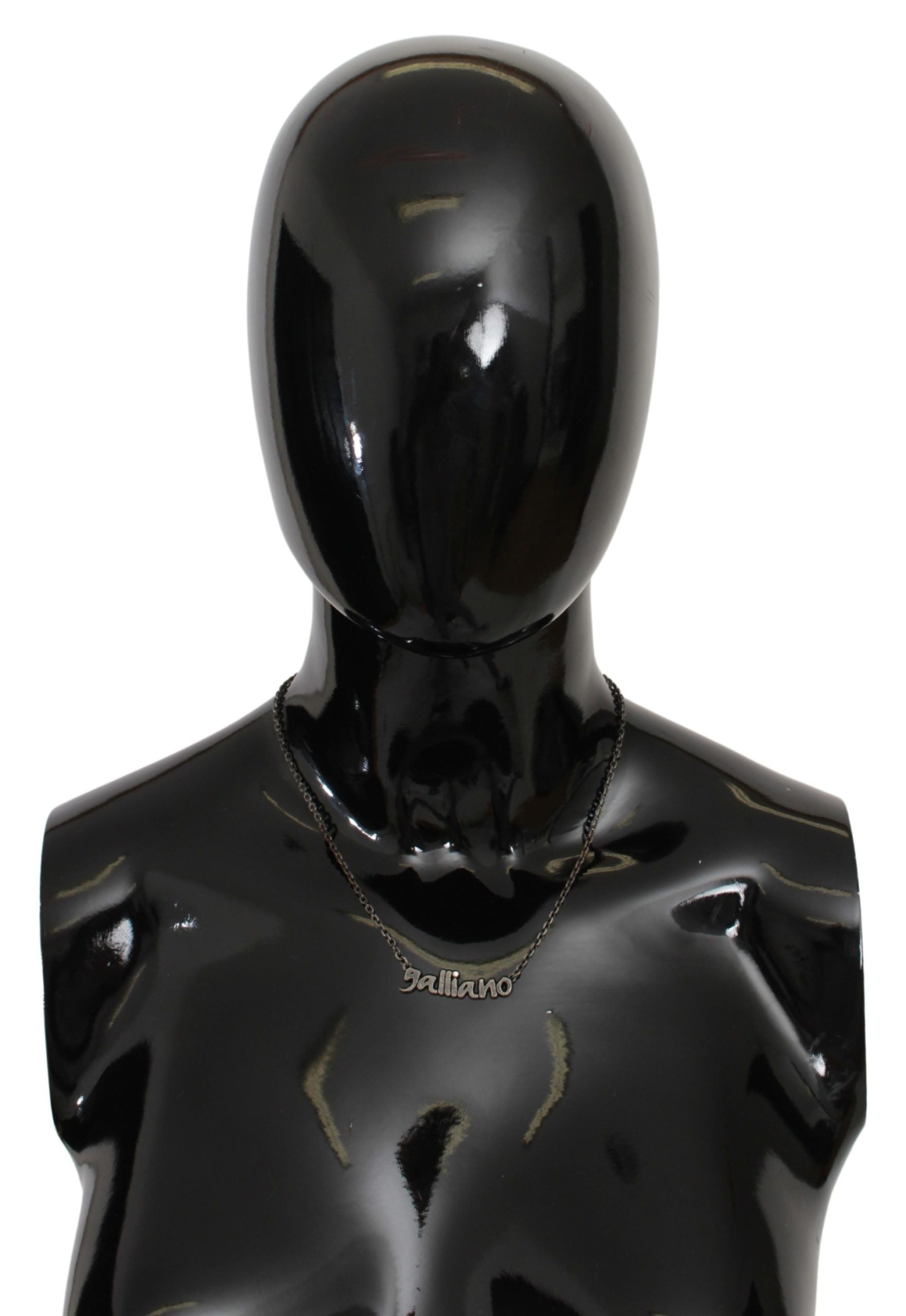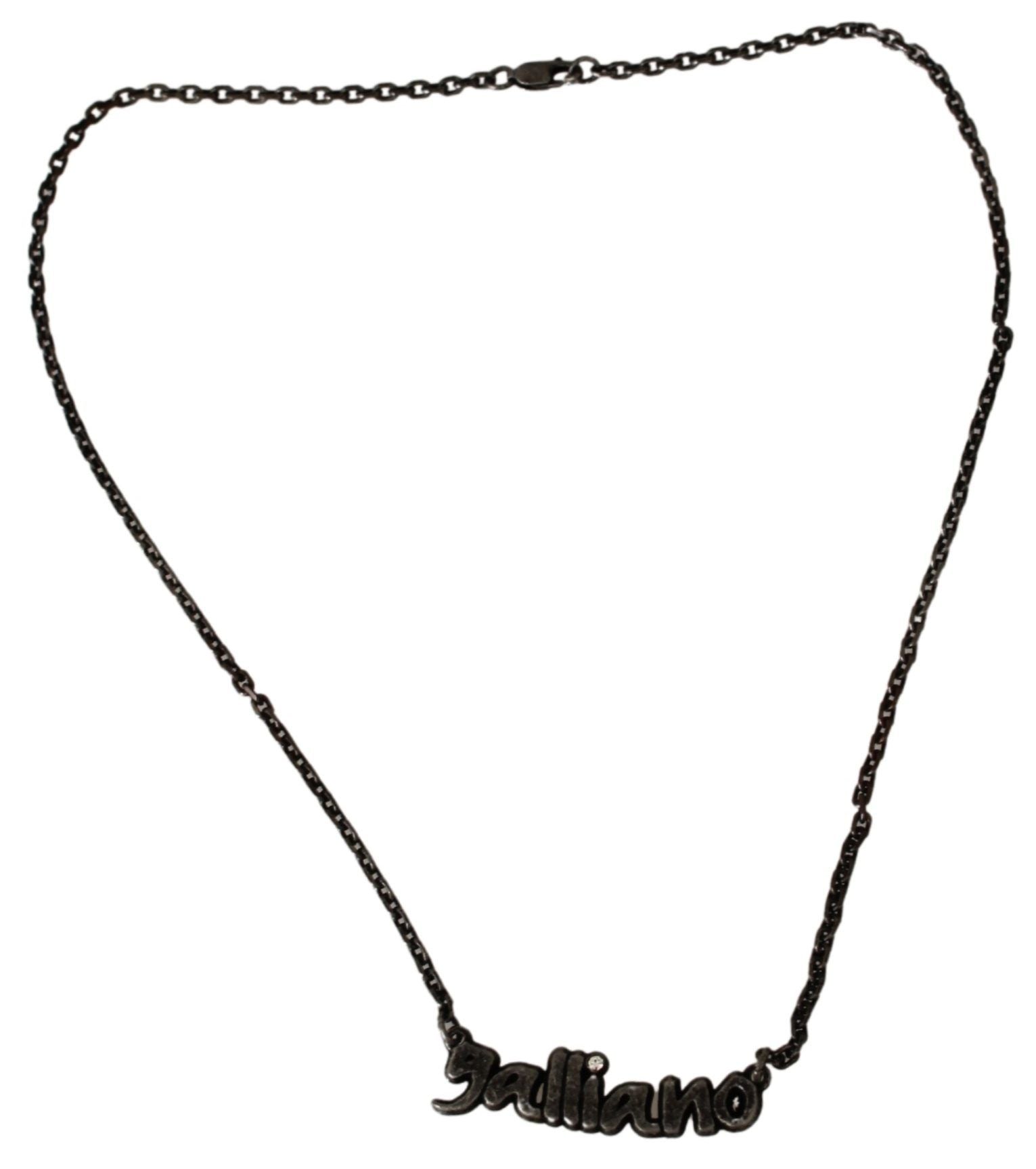 John Galliano Silver Gray Steel Crystal Branded Charm Pendant Necklace