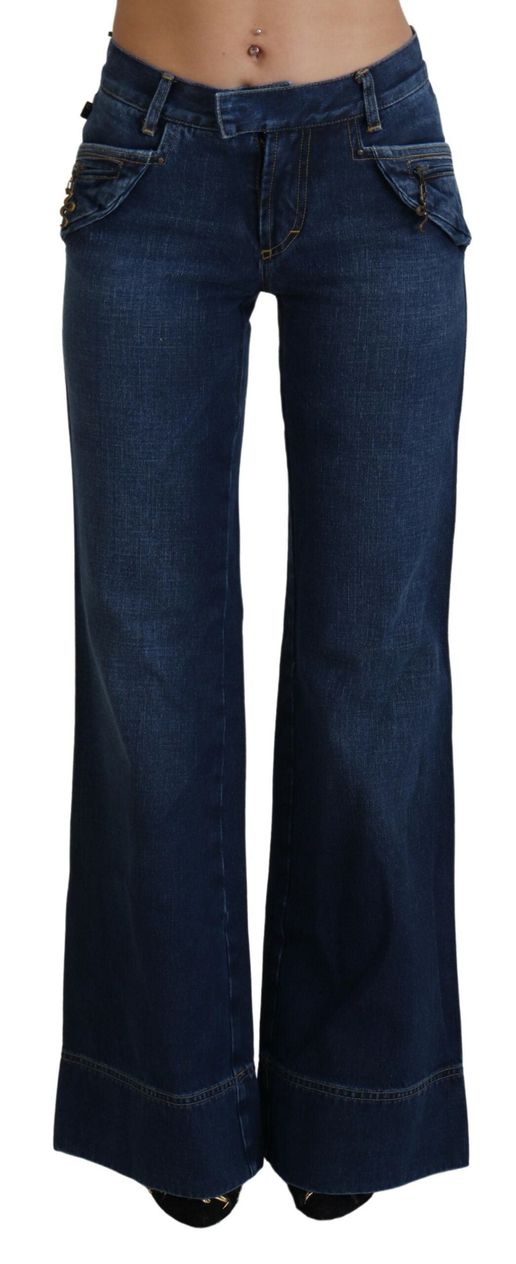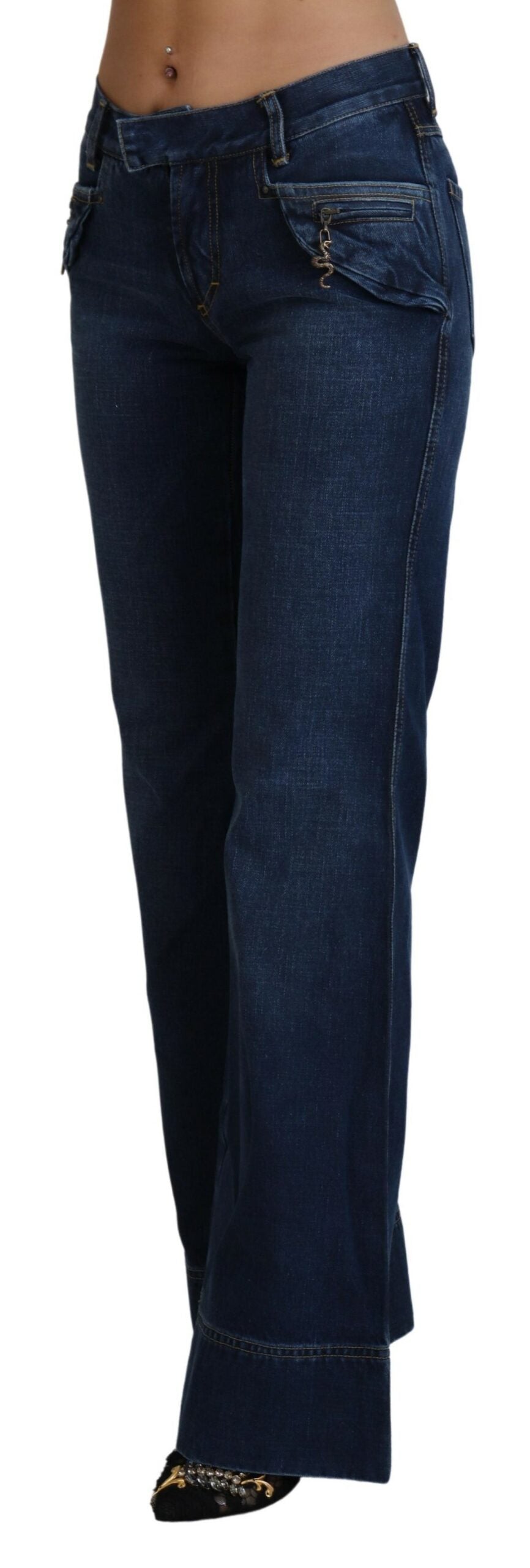 Just Cavalli Blue Low Waist Flared Leg Cotton Denim Jeans