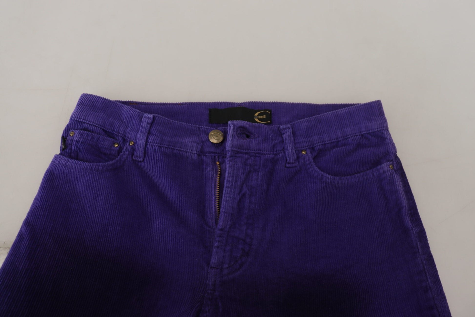Just Cavalli Purple Cotton Corduroy Women Pants