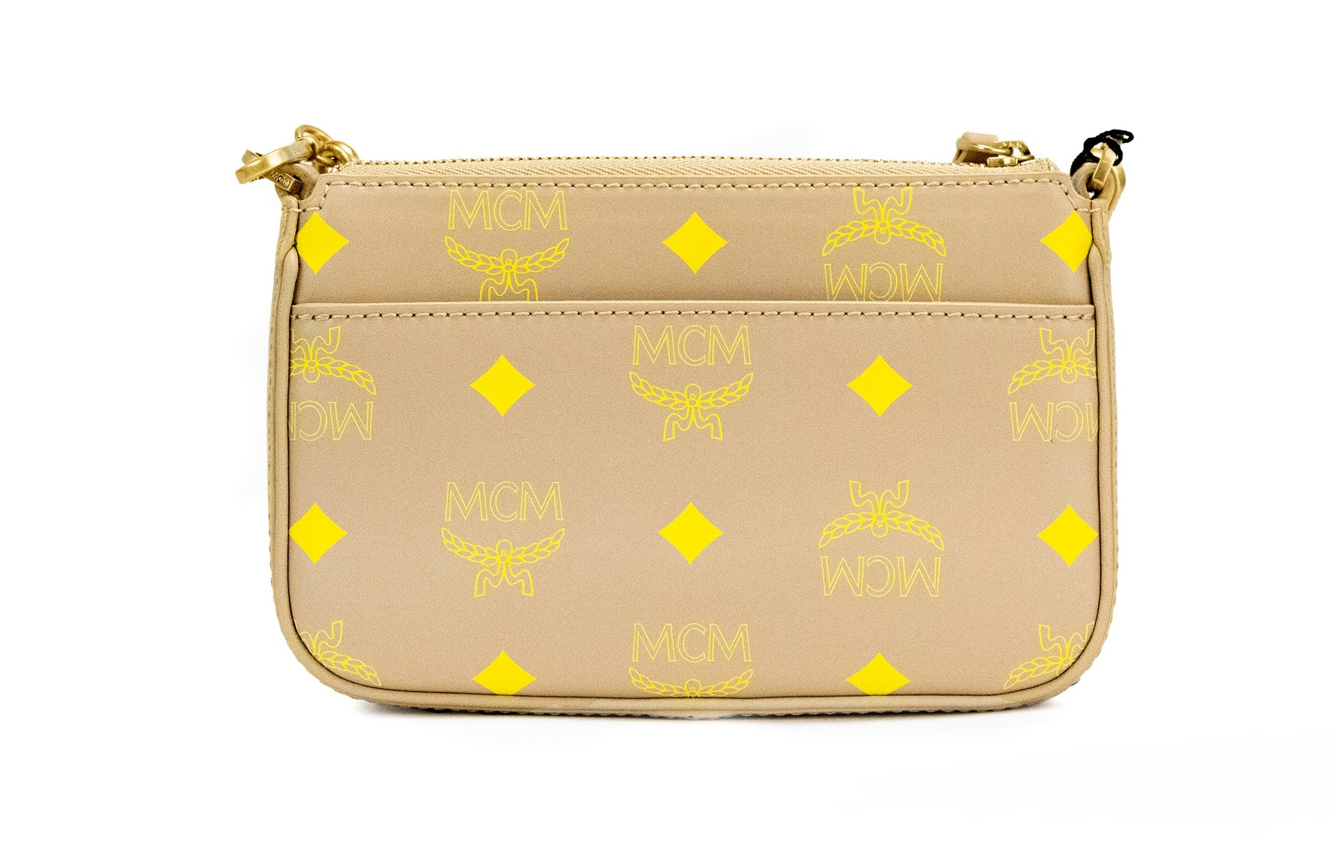 MCM Color Splash Logo Croissant Smooth Leather Mini Pouch Crossbody Handbag