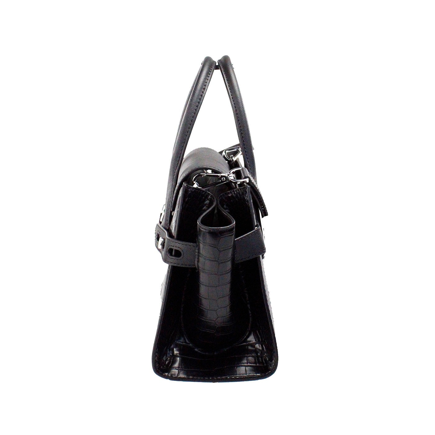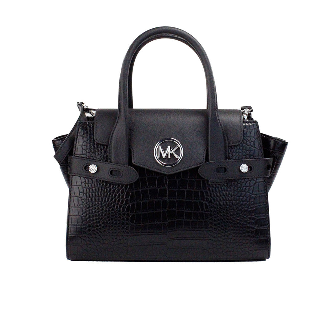 Michael Kors Carmen Medium Black Embossed Leather Satchel Purse Bag