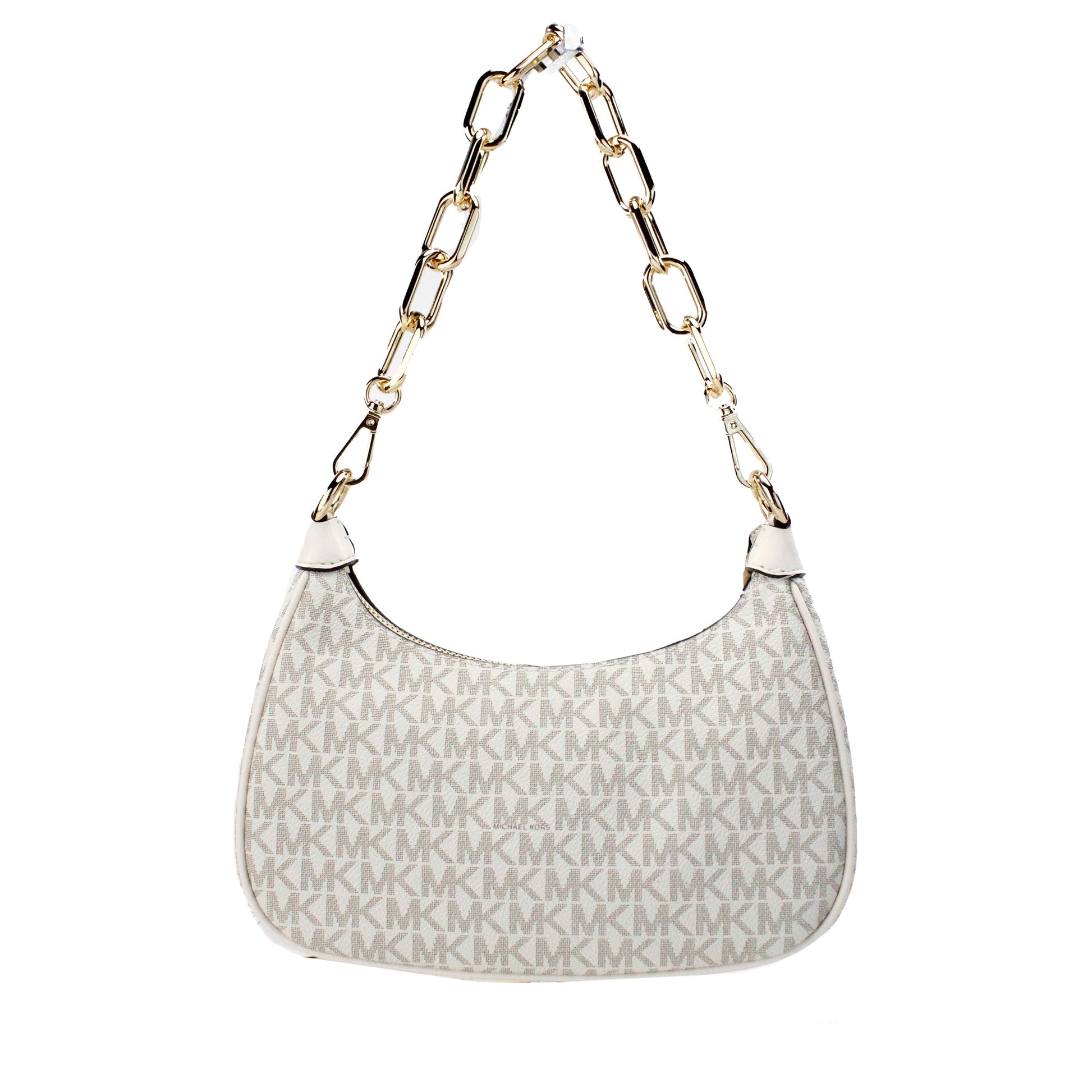 Michael Kors Cora Medium Light Cream Signature PVC Zip Pouchette Crossbody Bag