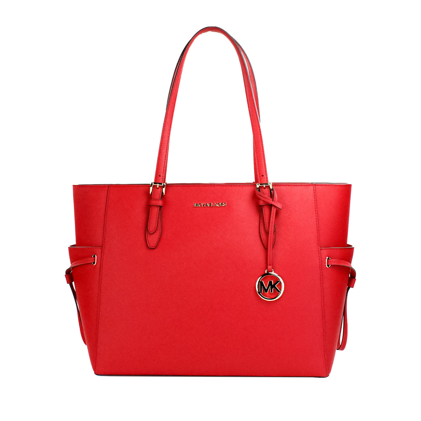 Michael Kors Gilly Large Bright Red Leather Drawstring Travel Tote Bag Purse
