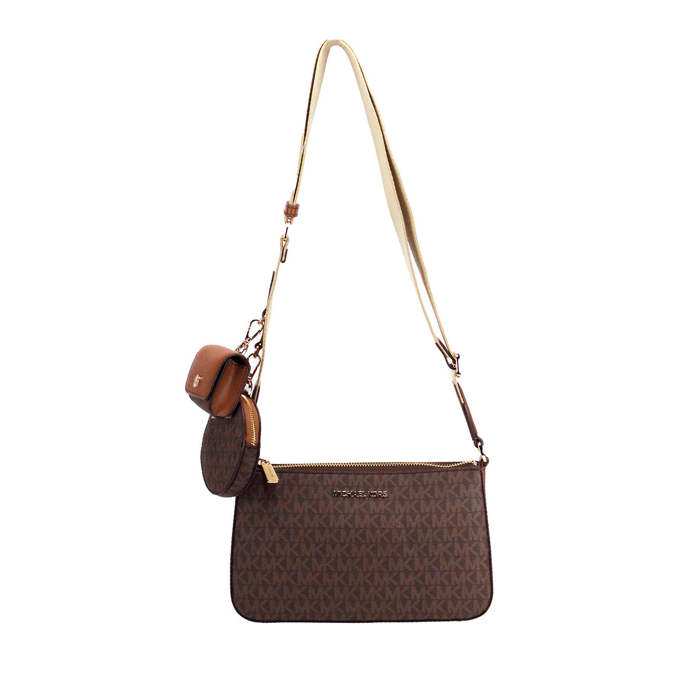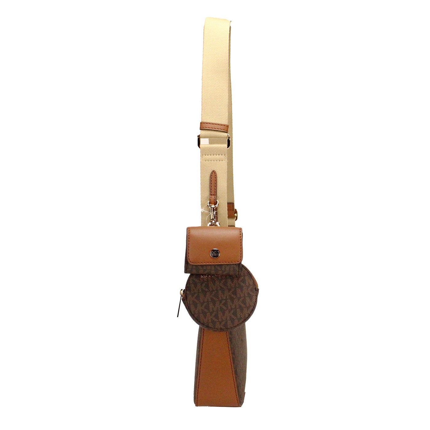 Michael Kors Jet Set Brown Signature PVC Crossbody Tech Attachment Bag Purse