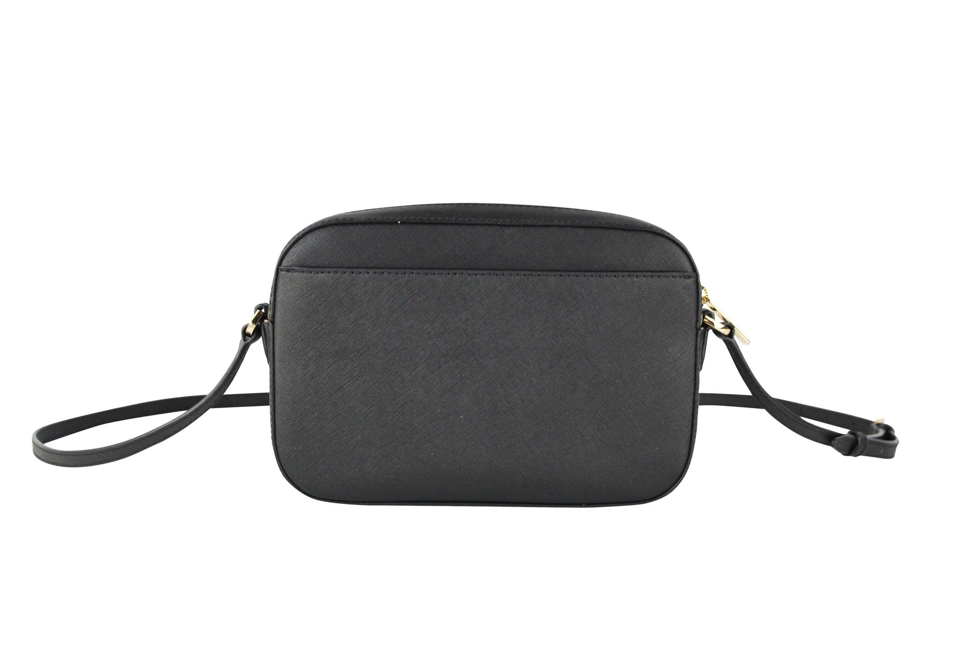Michael Kors Jet Set Item Large East West Saffiano Leather Zip Chain Crossbody Handbag (Black Solid/Gold)