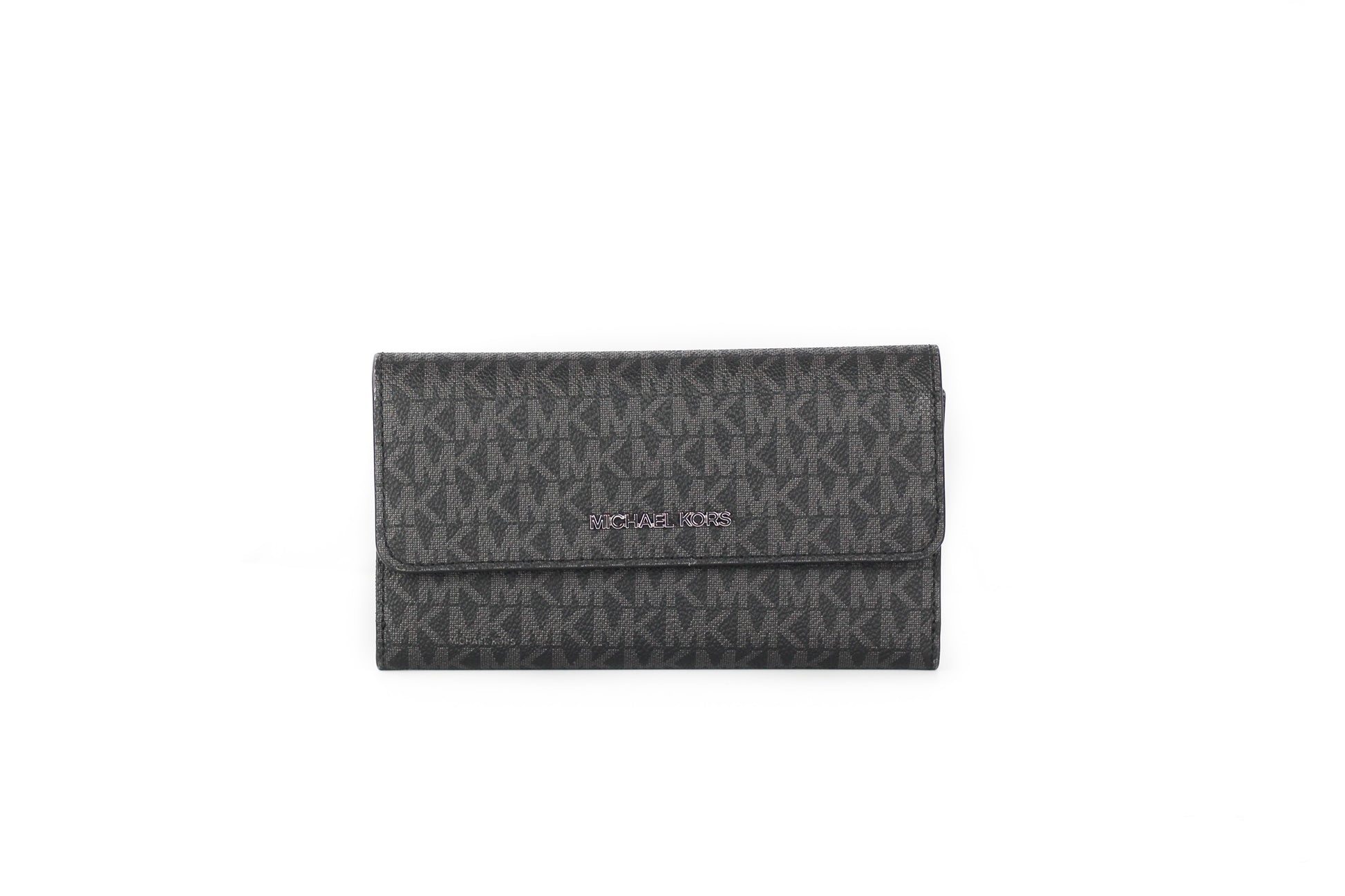 Michael Kors Jet Set Travel Leather Large Trifold Wallet Clutch Black