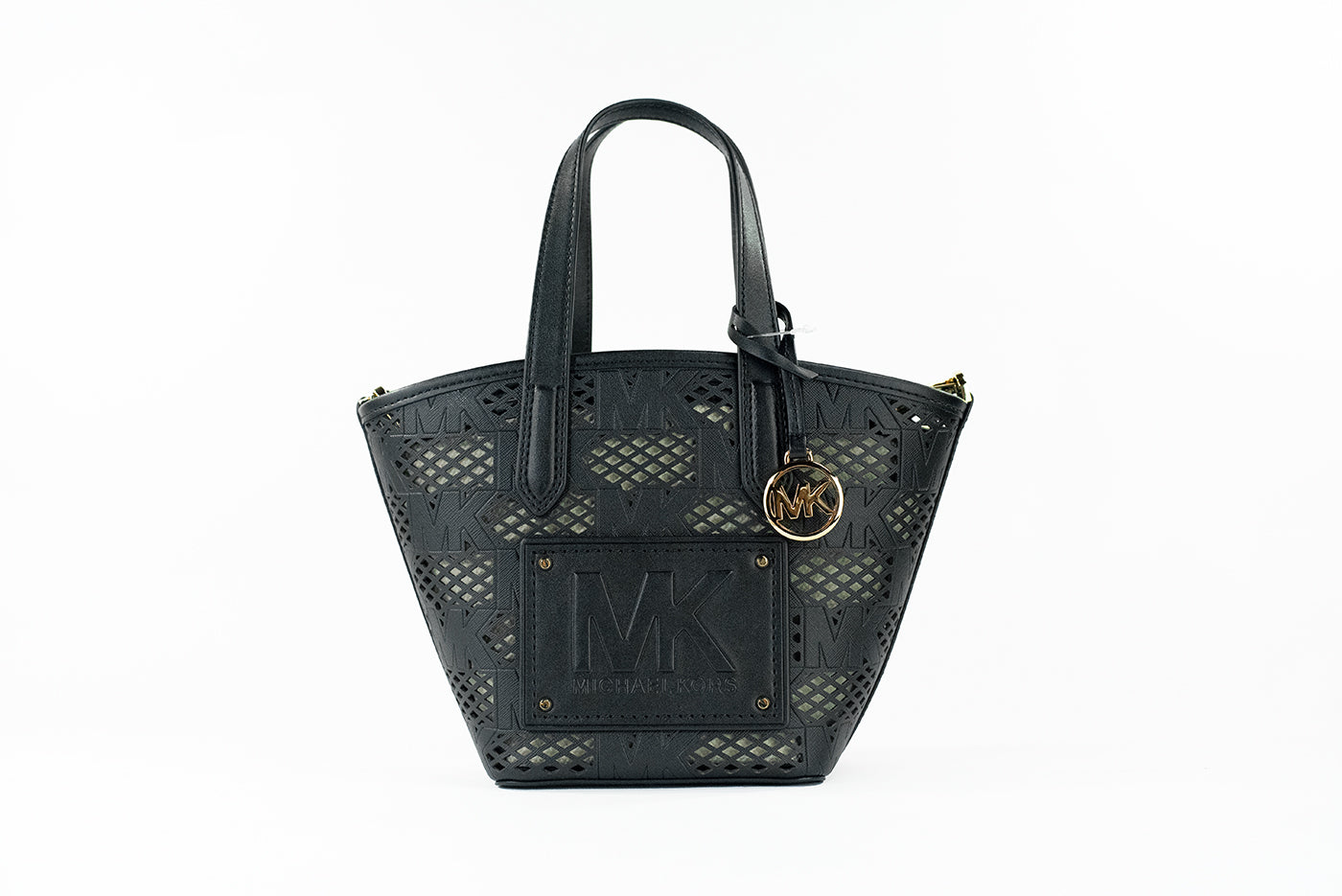 Michael Kors Kimber Small Black Leather 2-in-1 Zip Tote Messenger Bag Purse