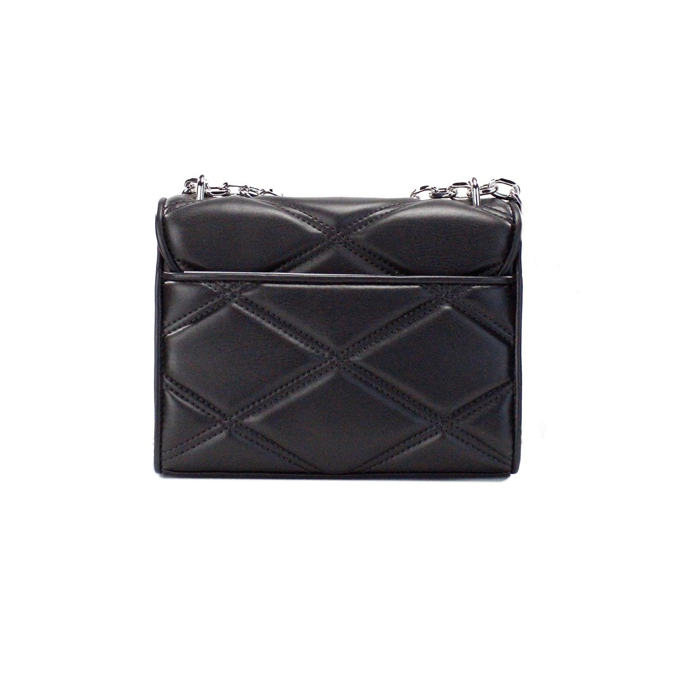 Michael Kors Serena Medium Black Diamond Quilted Faux Leather Flap Shoulder Bag