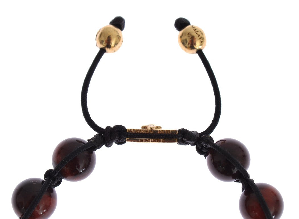 Nialaya CZ Red Tigers Eye Gold 925 Silver Bracelet