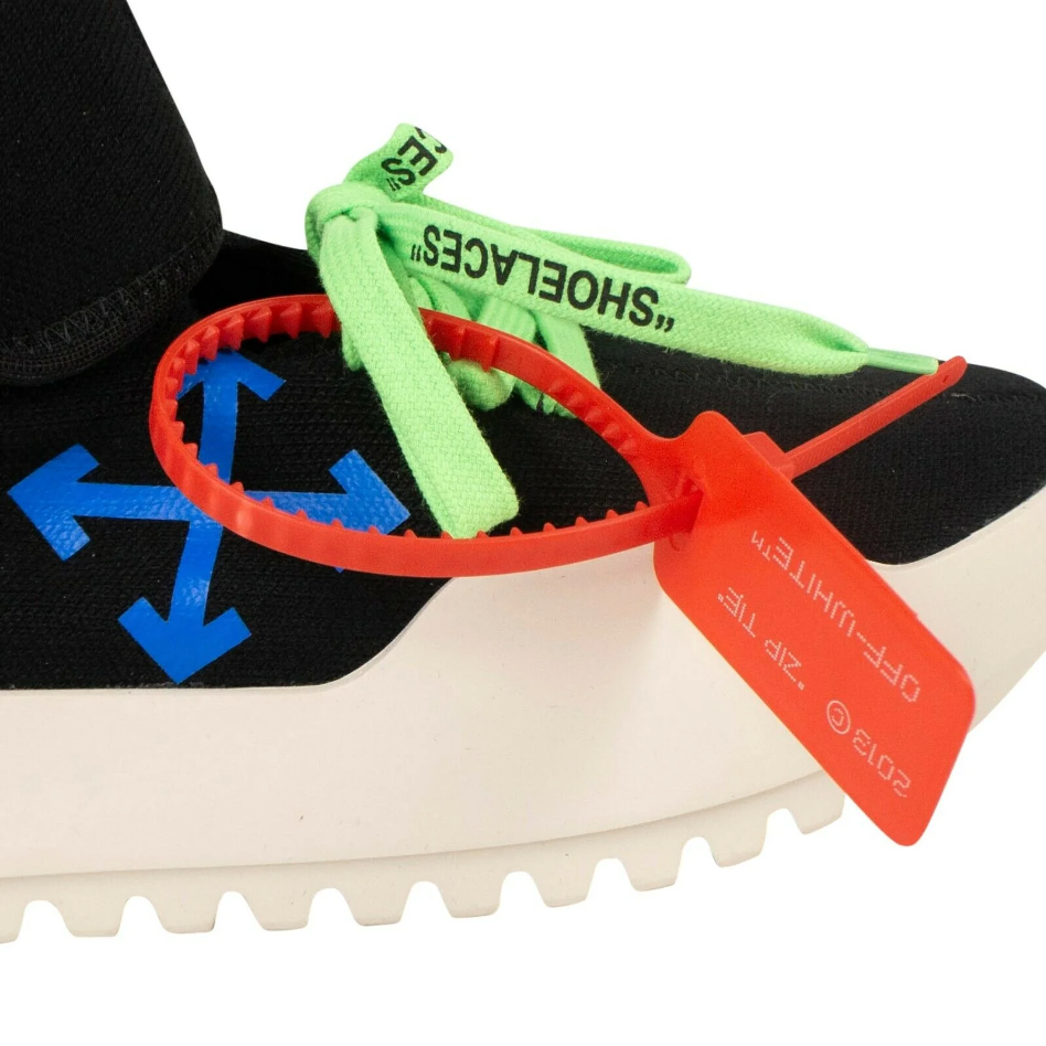 Off-White Moto Wrap sneakers in stretch fabric with double buckles and colored Off-White logo prints, contrasting green strings