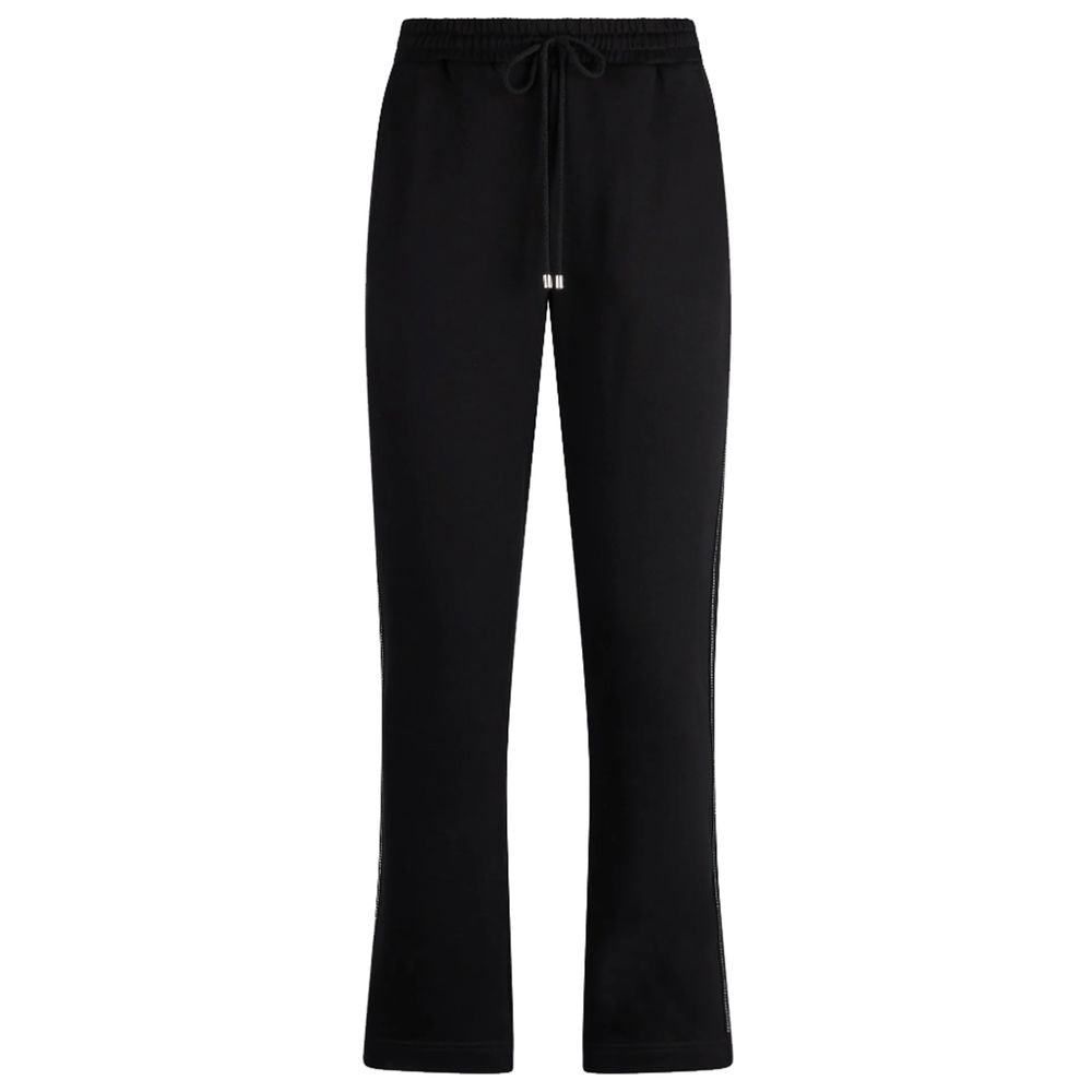 Patrizia Pepe cotton sweatpants with elasticated waist and drawstring, two side pockets and one back, rhinestone decoration along the sides of the legs