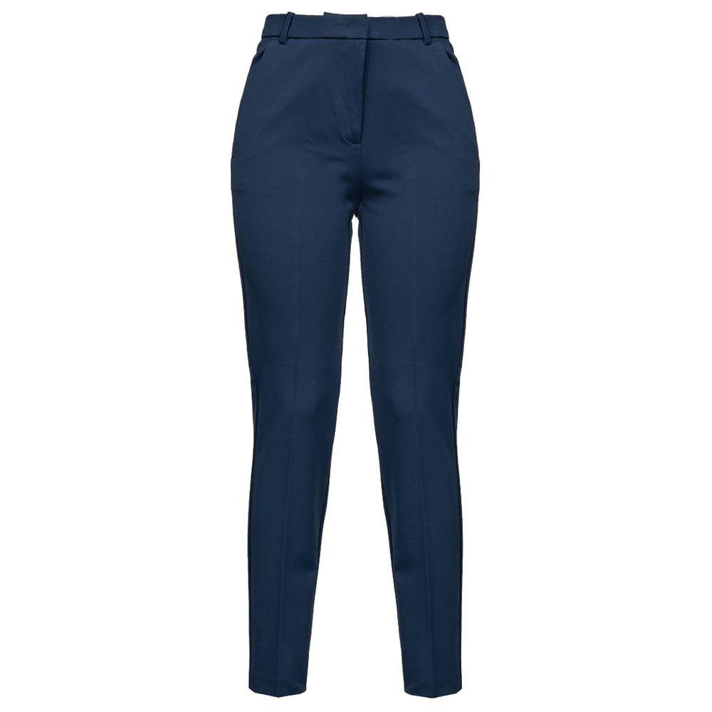 Pinko cigarette-fit trousers in technical stretch viscose fabric with a cloth stitch finish with a particular scuba effect. Pressed pleat detail at the center of the leg on both the front and back, French pockets on the front and welt pockets on the back. Cotton lined